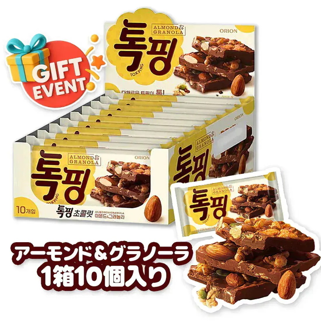 オリオン【韓国 お菓子】トッピング ヘーゼルナッツ&グラノーラ 43g 1箱(10個入り), アーモンド&グラノーラ 43g 1箱(10個入り) _韓国お菓子/韓国スイーツ/ミックスナッツ チョコレート
