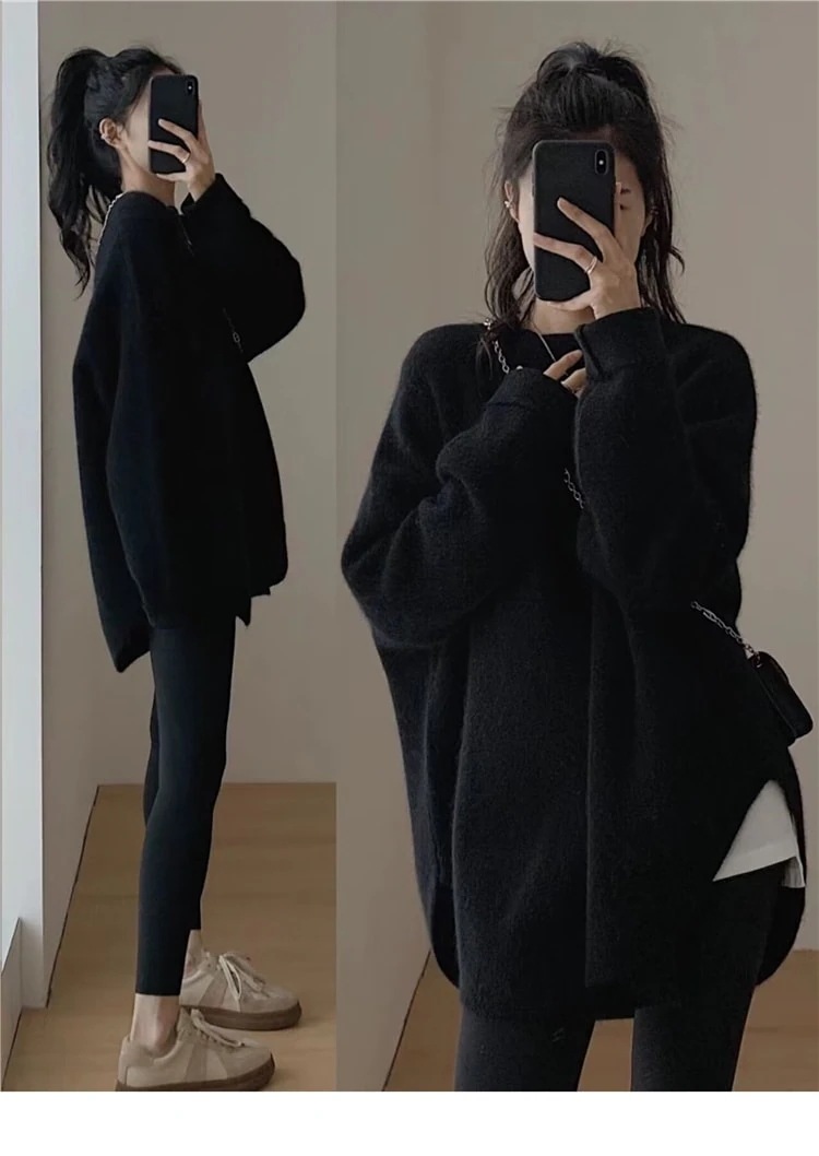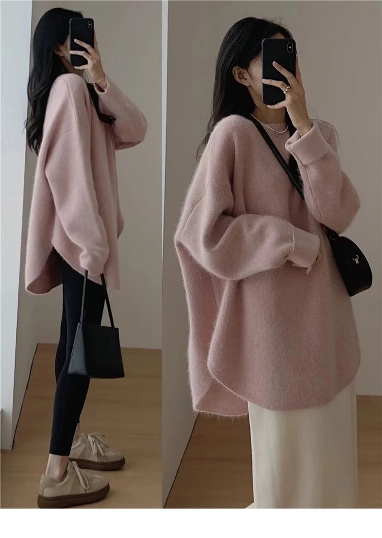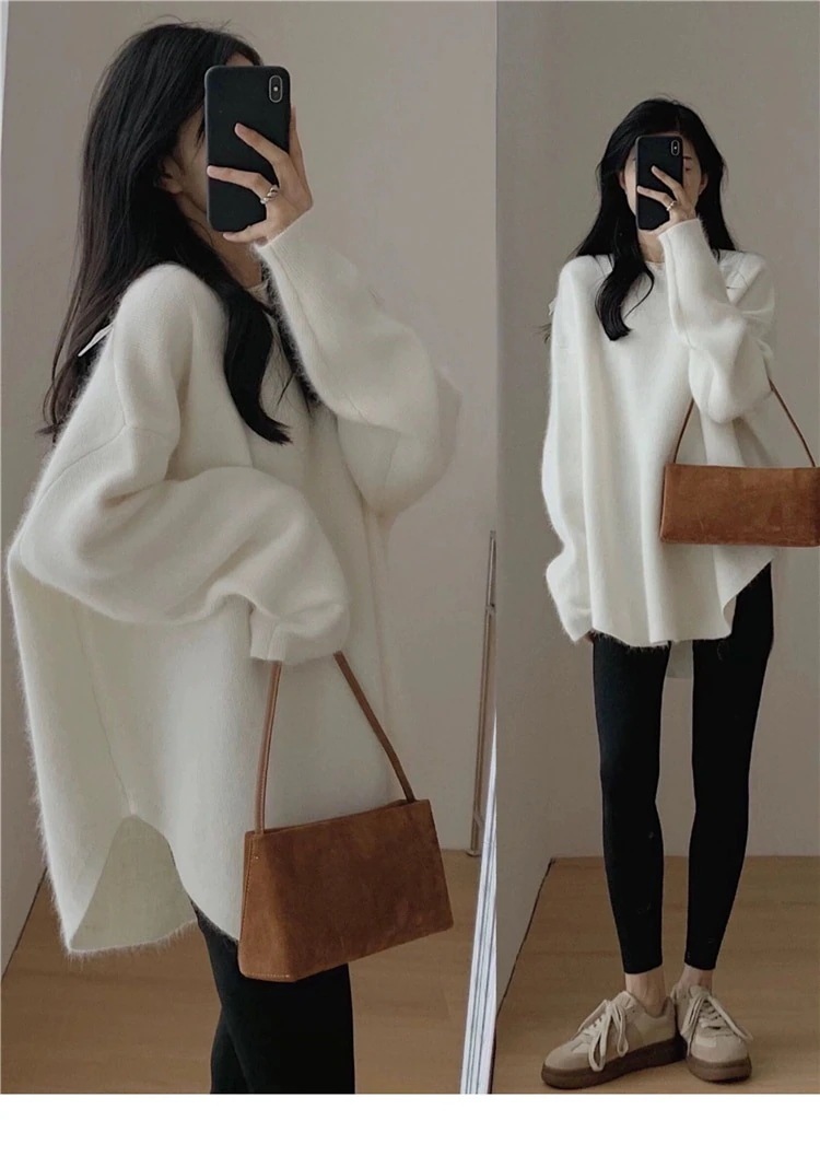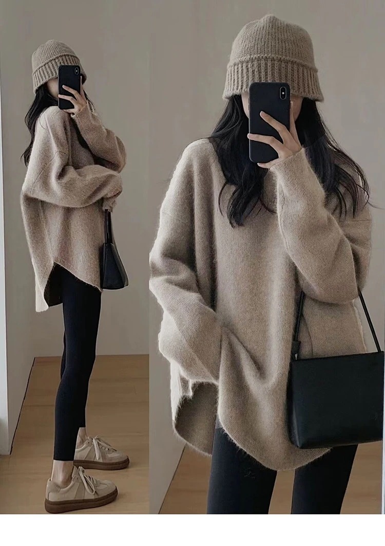 ニット トップス 長袖 セーター ふわふわ レディース 長め丈 体型カバー チュニック 無地 韓国ファッション カジュアル きれいめ 上品 無地 プチプラ 秋 冬 おしゃれ