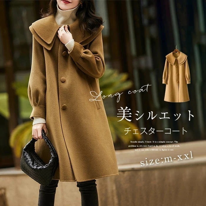 チェスターコート ロングコート レディース 秋冬 ビックカラー コート アウター ロング丈 ゆったり ロングチェスターコート 大きめ トレンチコート 無地 着痩せ 体型カバー お洒落 きれいめ 通勤