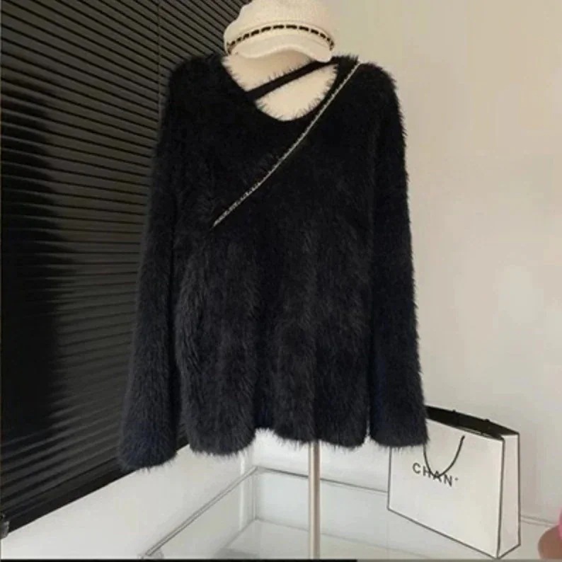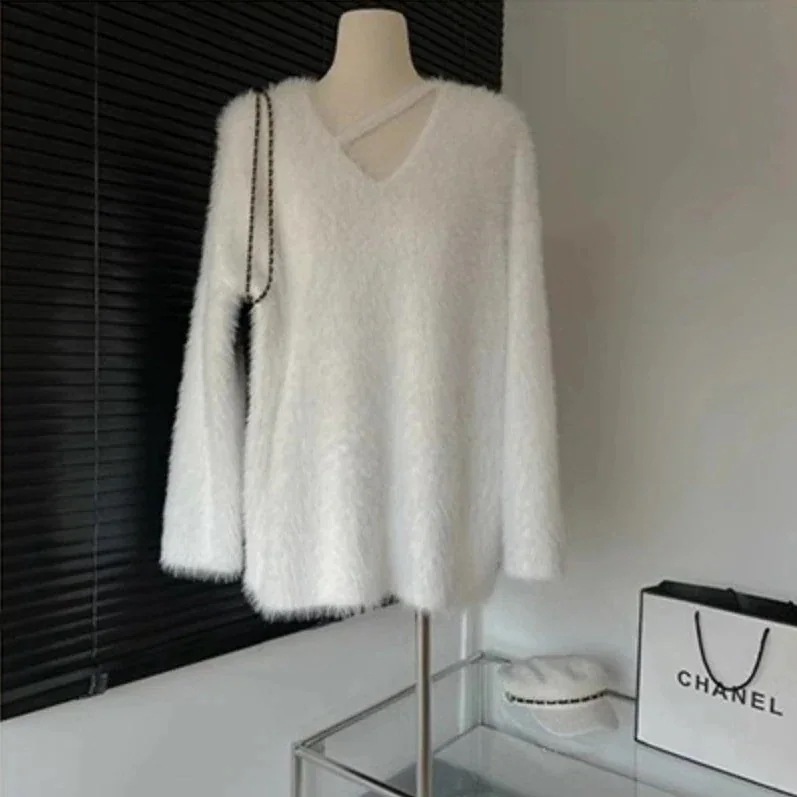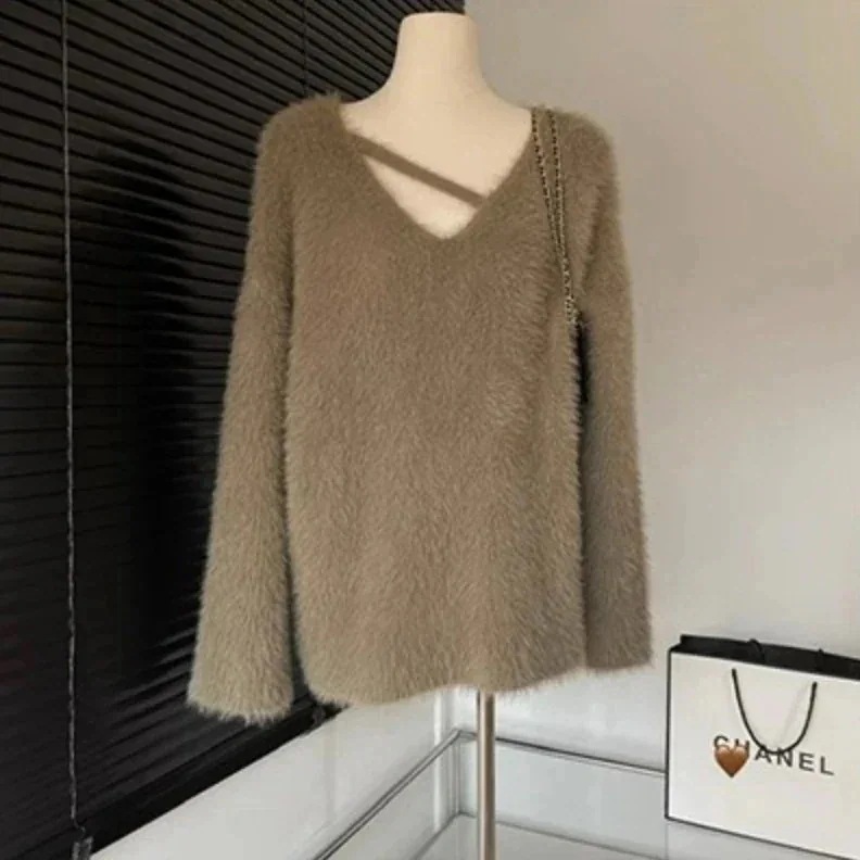カシミヤタッチ 怠惰な風ゆったりニット 暖かい セーター 可愛い ベーシックニットふんわり レディース 長袖トップス 百掛け着痩せ モテ質感 ニット 人気なリブニット 冬 Vネック