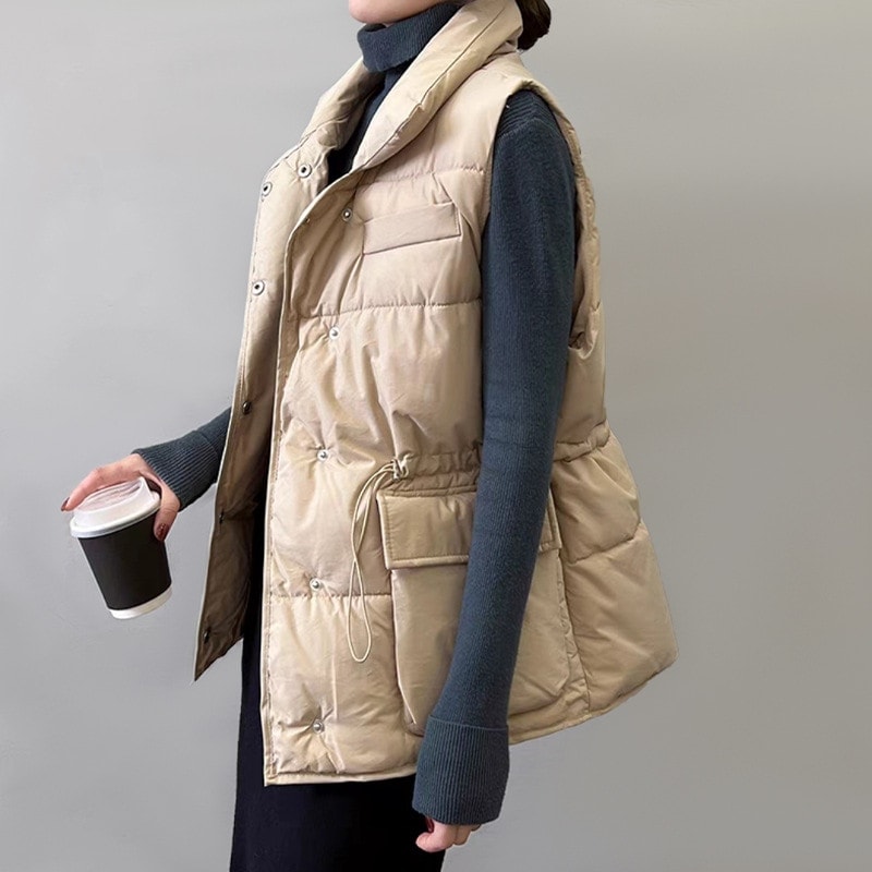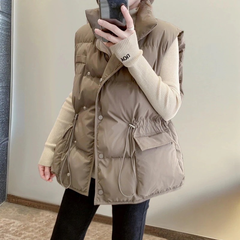ダウン綿ベストショート丈韓国風ウエストシェイプ厚手カーディガンベストカーディガンコートトップス