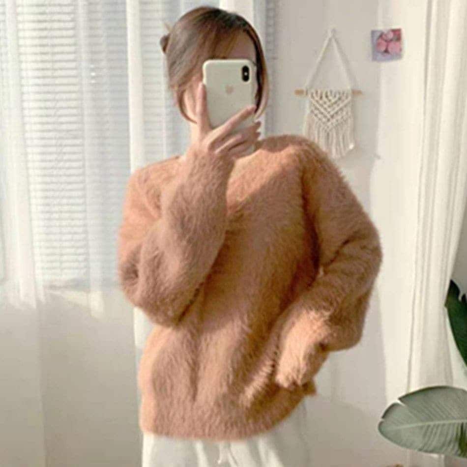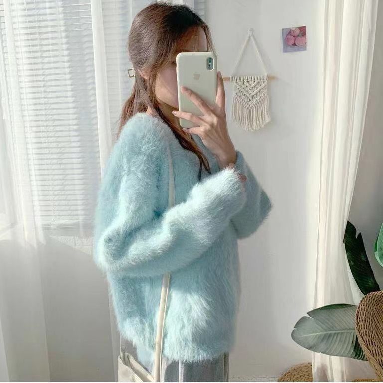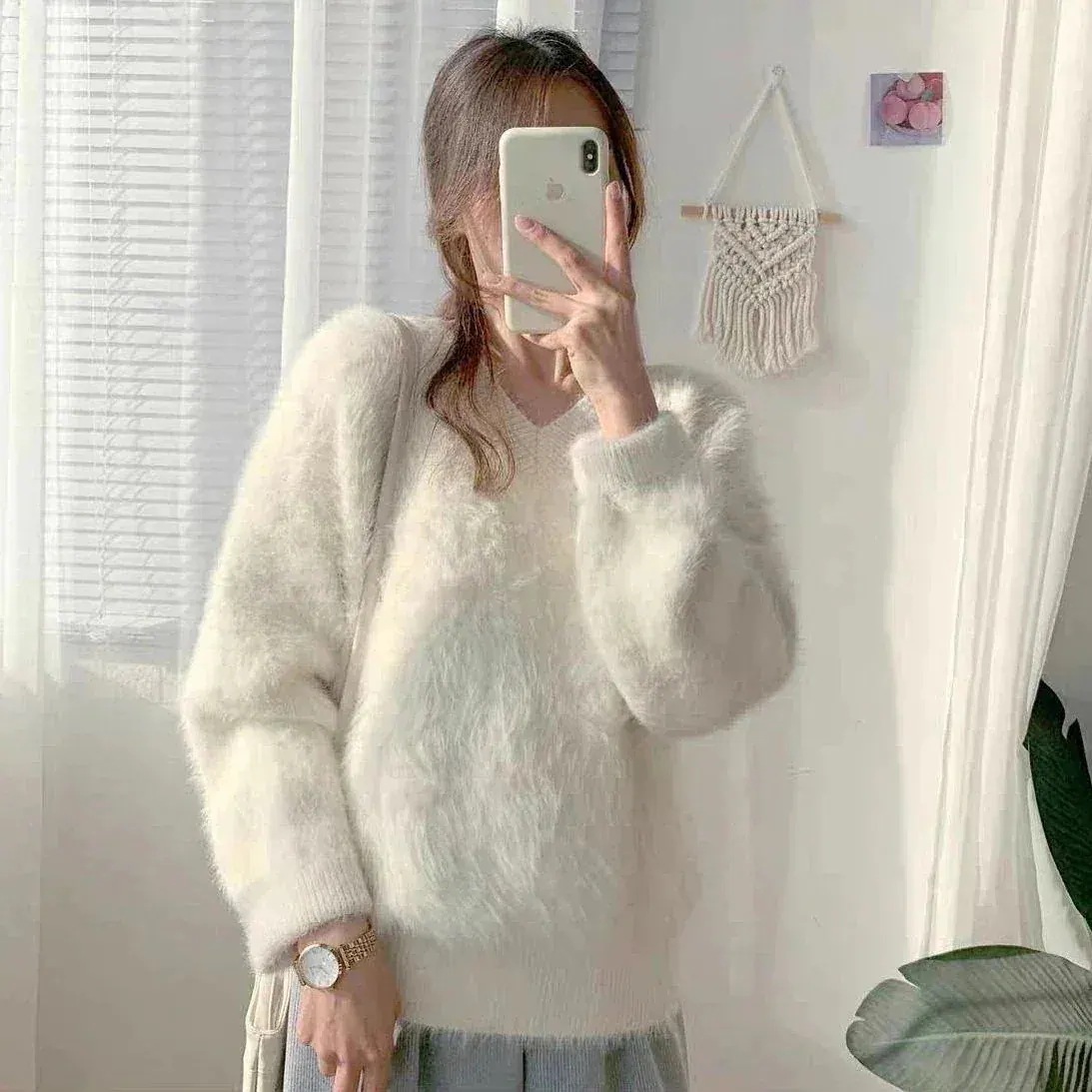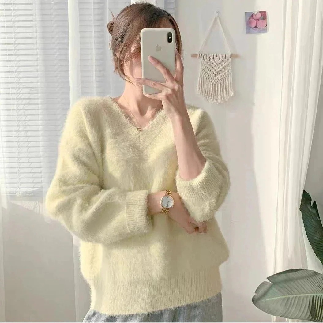 大人気! 人気なリブニット Tシャツカットソー ミンクセーター レディース 秋 厚手 Vネック ゆったり インナー ニットセーター ベーシックニット ニット