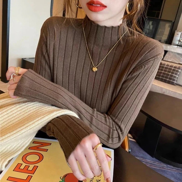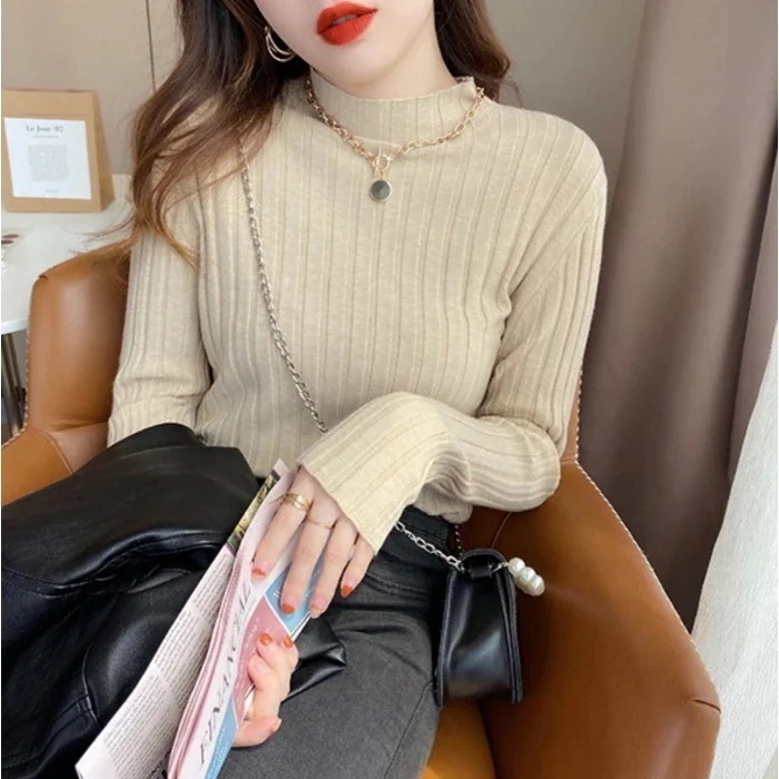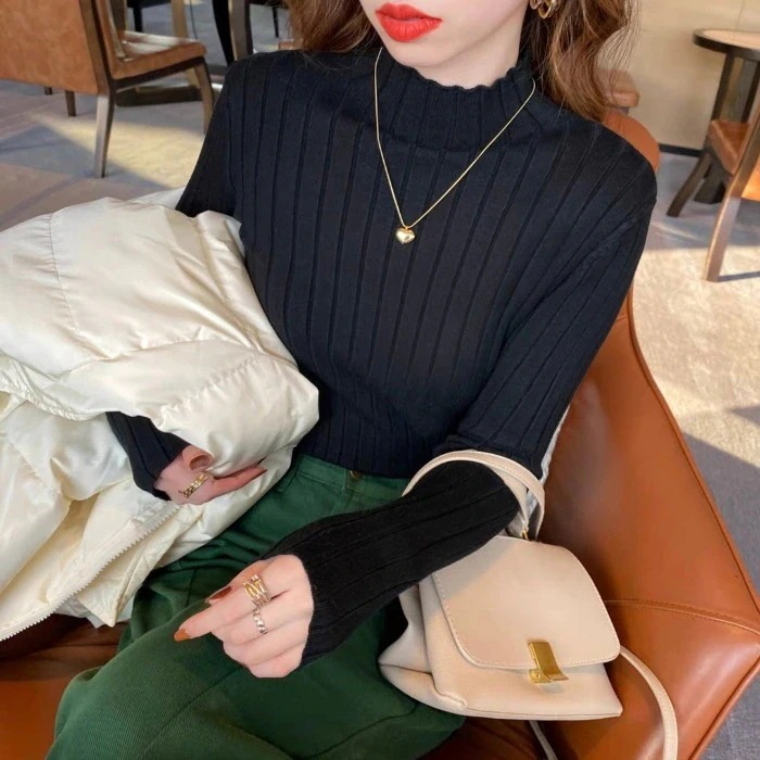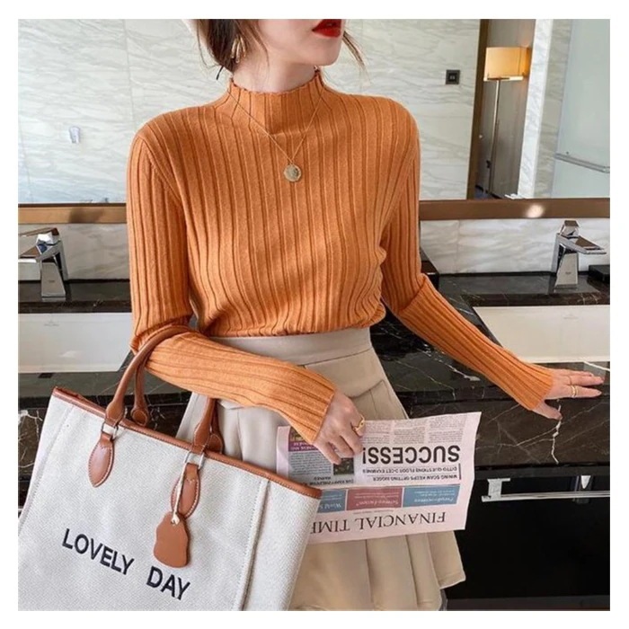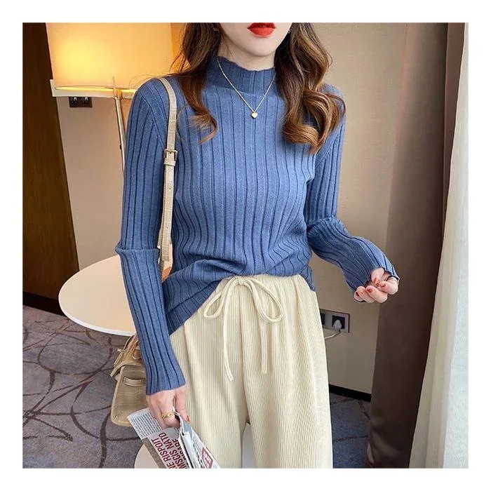 ニット 長袖 無地 ハイネック セーター レディース 人気なリブニット ベーシックニット インナー トップス 重ね着 タートルネック カシミヤタッ