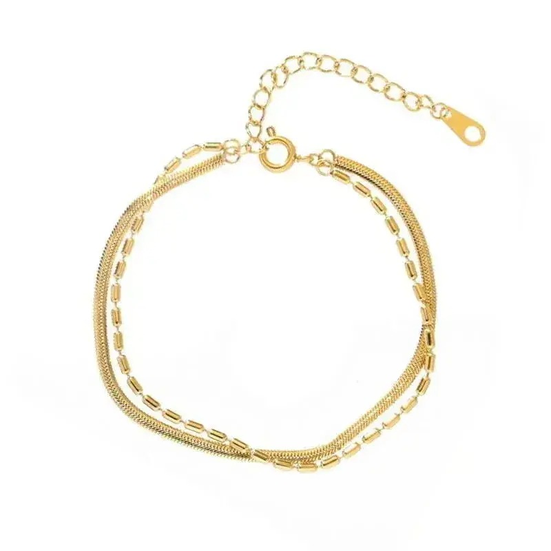 即納 ステンレス18金ヘリンボーンチェーン2連ブレスレット 手元を美しく 福袋 バレンタインデープレゼント バレンタイン 誕生日プレゼント
