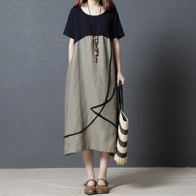 N【急速発送】【超人気好評】春夏 ゆったり 体型カバー 日系 レディース ワンピース 快適 半袖 ロングスカート Aラインワンピース 5