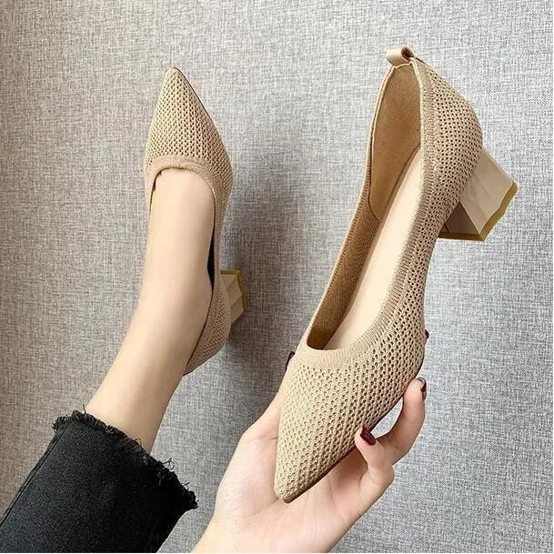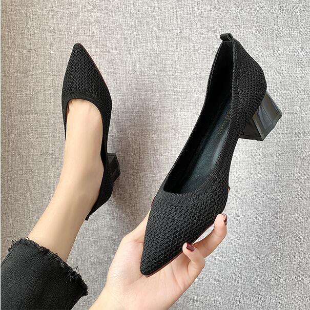 スタイルアップ!ヒールパンプス ヒールパンプス 走れるパンプス ローヒール シューズ 新作 痛くない レディース 太ヒールハ ニット靴 ポインテッドトゥ イヒール 楽ちん 美脚 福袋