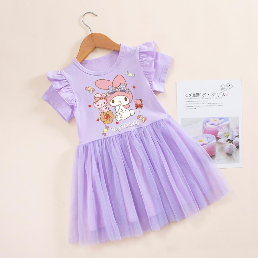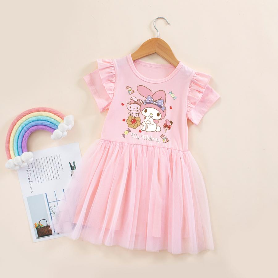 クロミちゃん ワンピース 子供 キッズ マイメロ 半袖 夏ワンピース ふわふわ ドレスカ ジュアル カワイイ 女の子 演出服 誕生日 プレゼント オシャレ 100~140