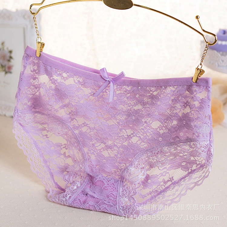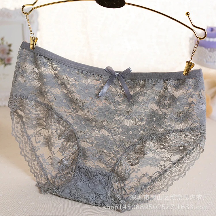 ジャカードレースの透け感あるセクシーなレースパンティ 透かし模様の少女風パンティ 可愛い女性用三角パンティ【ツーピース】