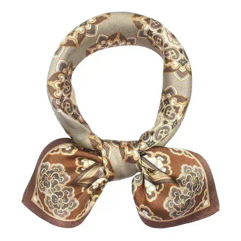 【シルク100% 肌ざわり】スクエアスカーフ 53cm ヘリングボーン ターコイズ ブルー エスニック プリント 春 夏 旅行 の 装い に 適 な 贈り物