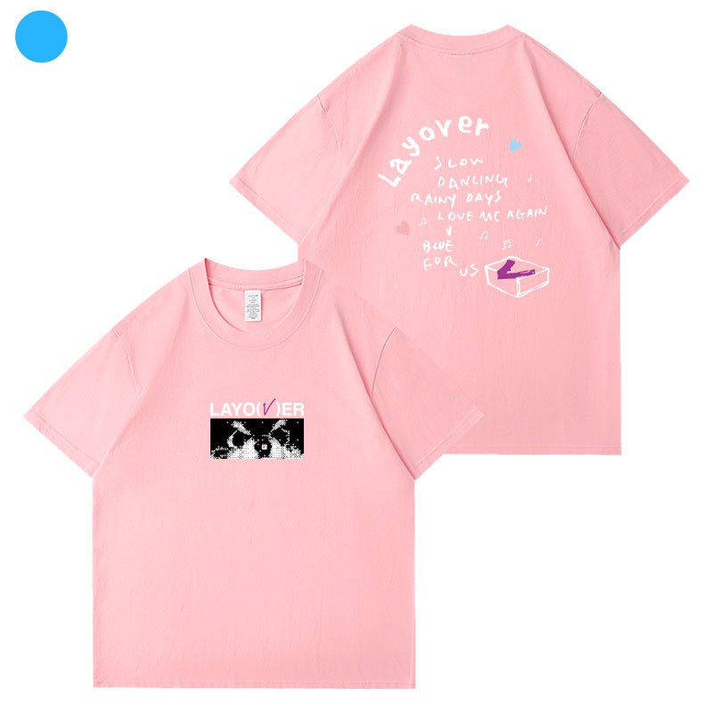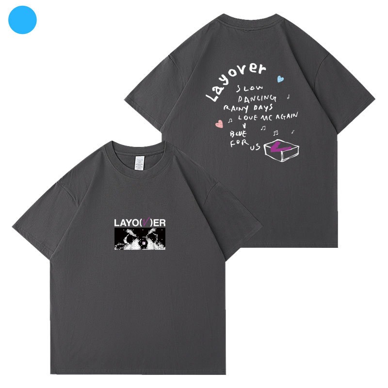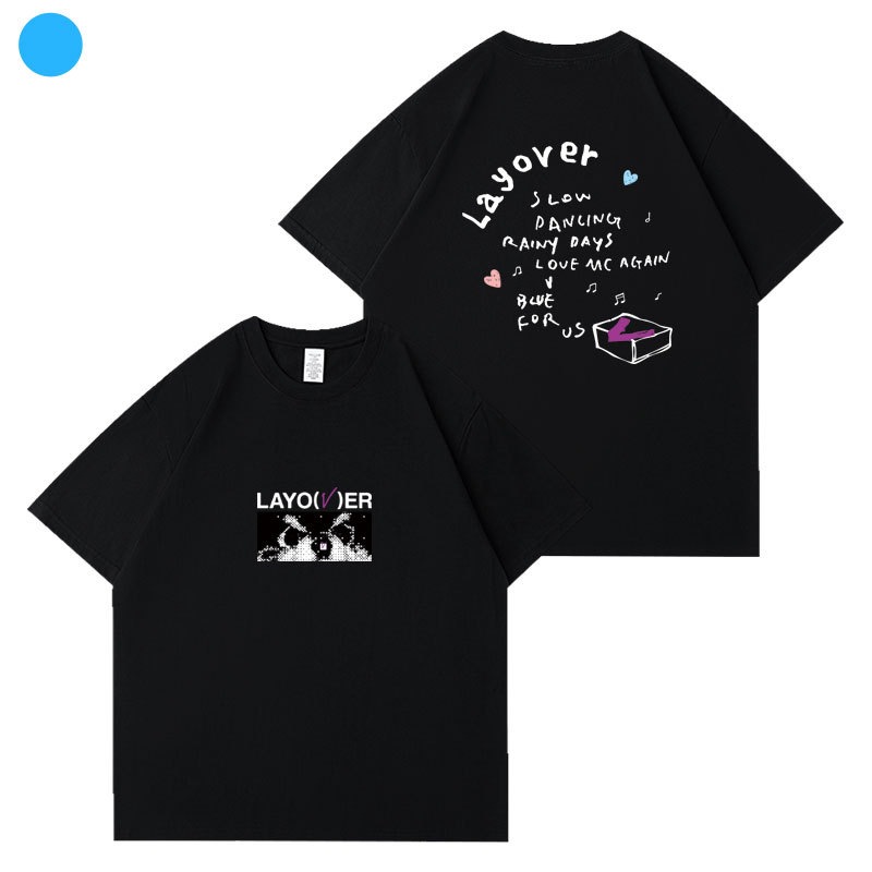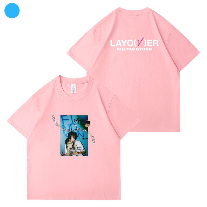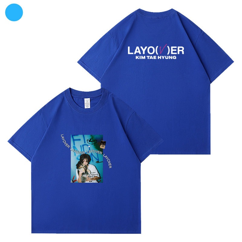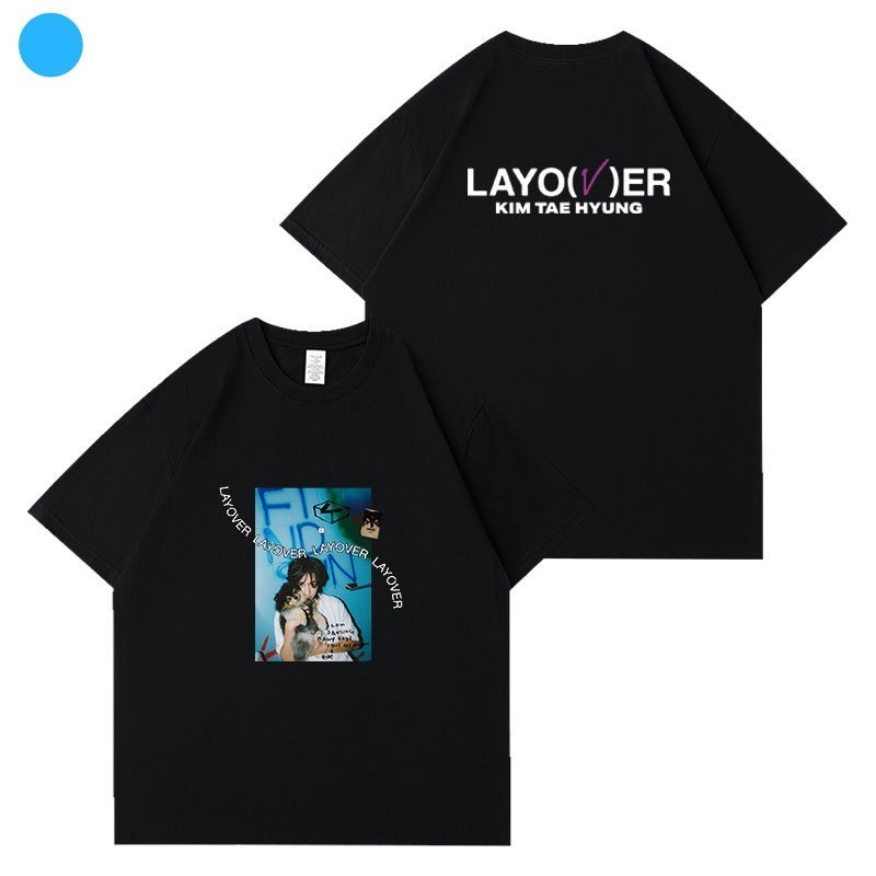 【2枚購入で200円 OFF!急速出荷】キムテヒョン VLayover半袖Tシャツコットンルーズショルダープリント歌服