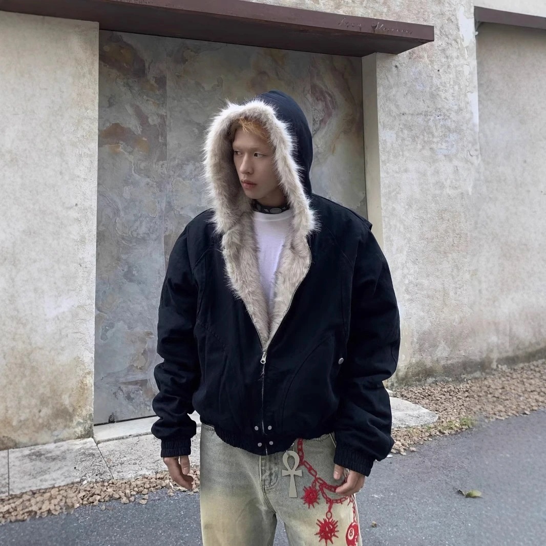 アメリカンレトロ デザイン性 冬季 綿服 ショート丈 保温厚手 毛皮襟コート