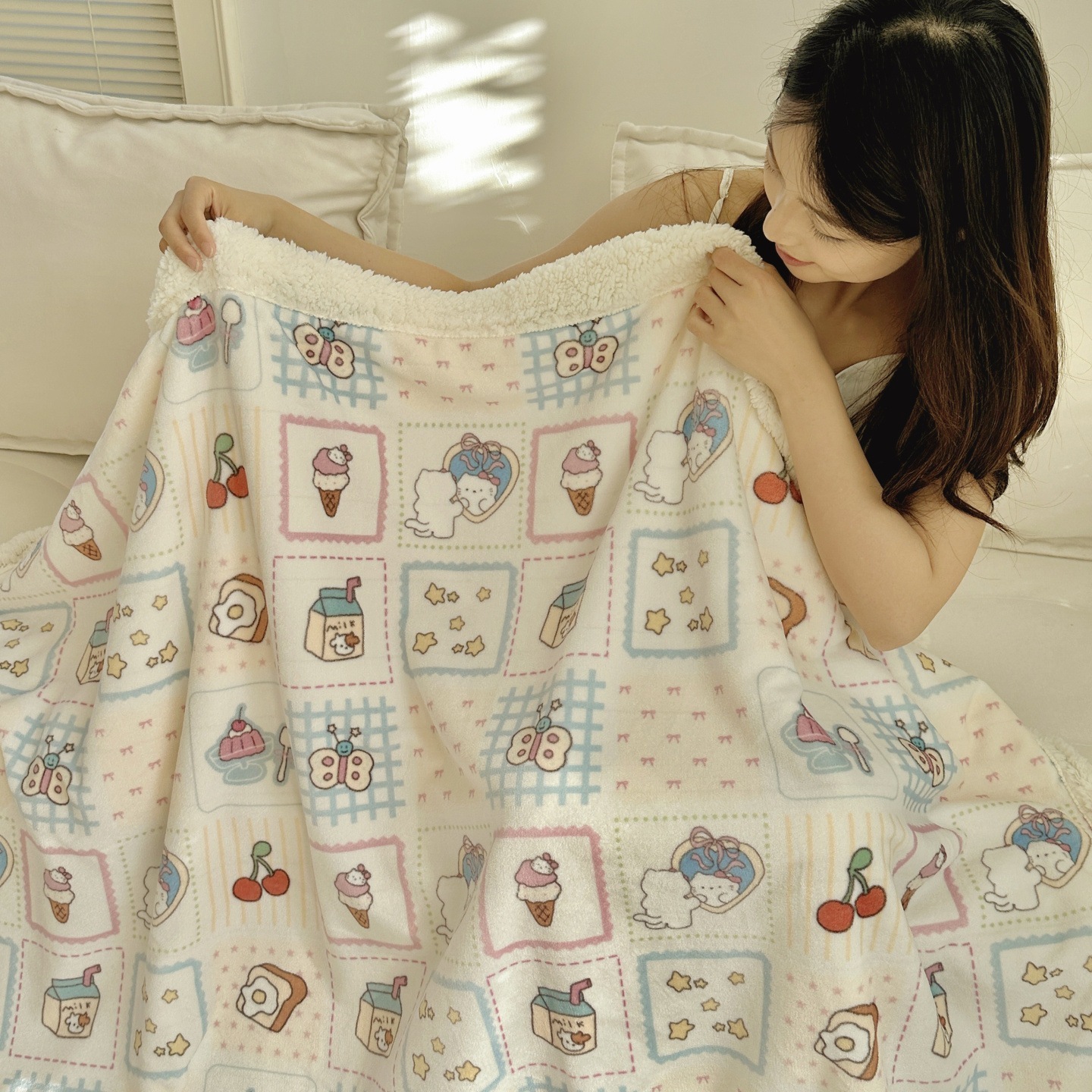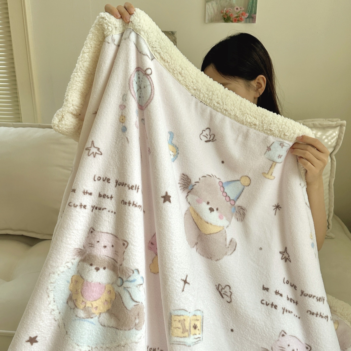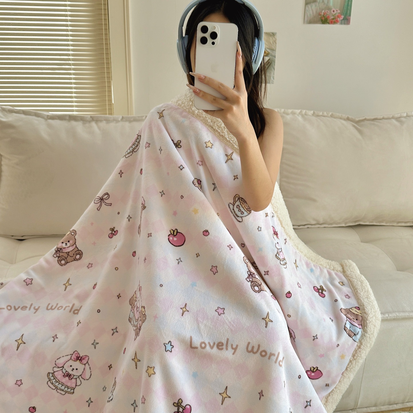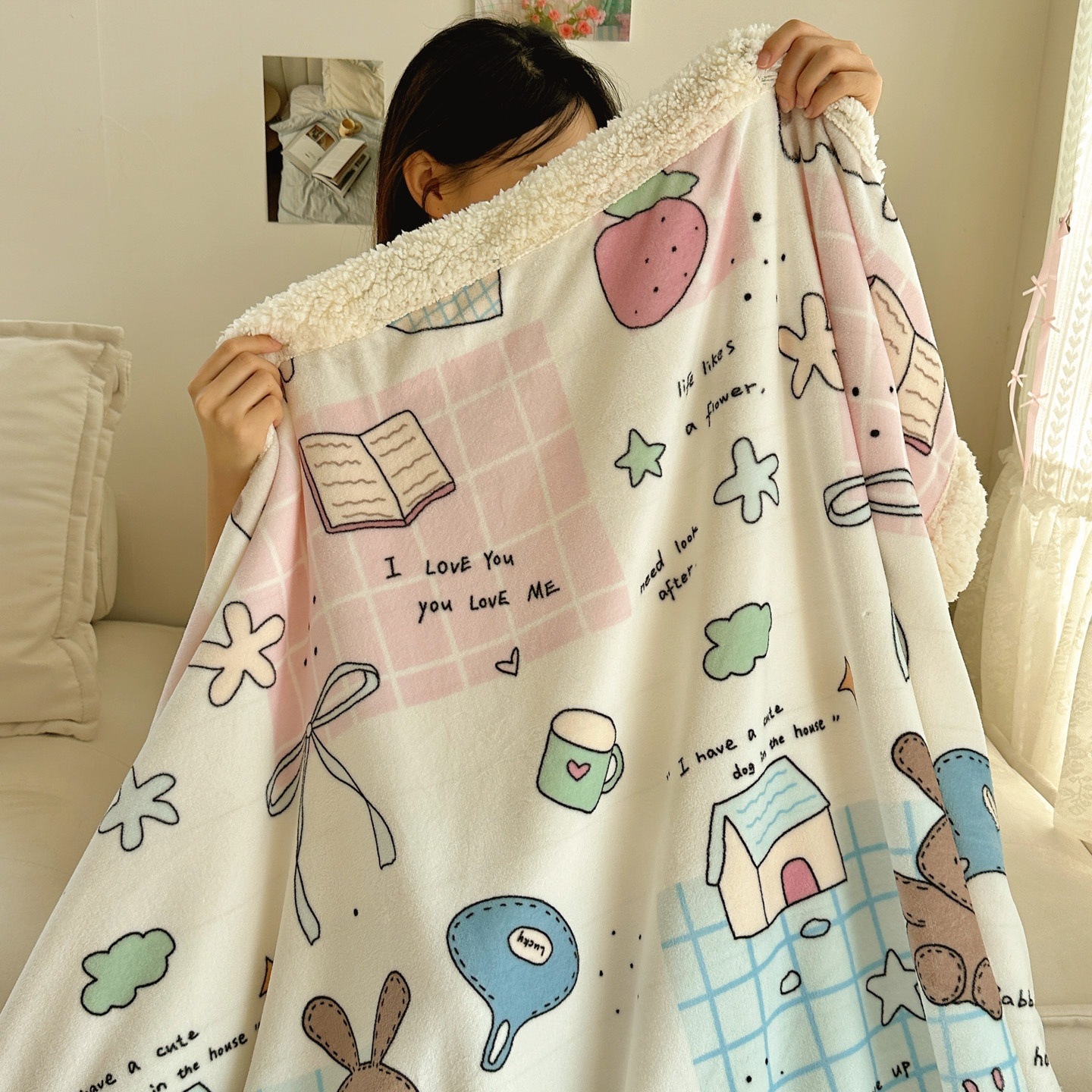 漫画ミルクベルベットブランケットプラスベルベット厚手ラムスキンブランケットエアコンランチブレイクブランケットショールブランケット学生寮小さなキルト