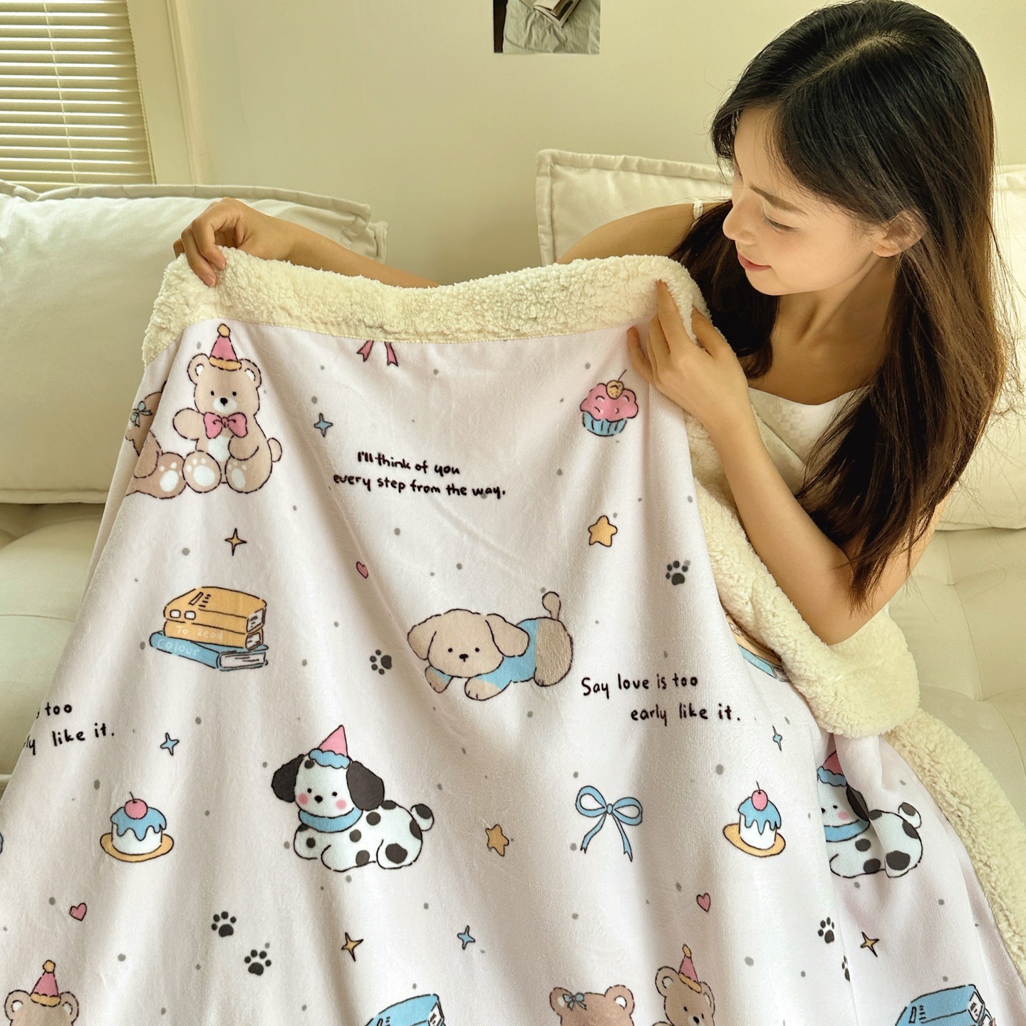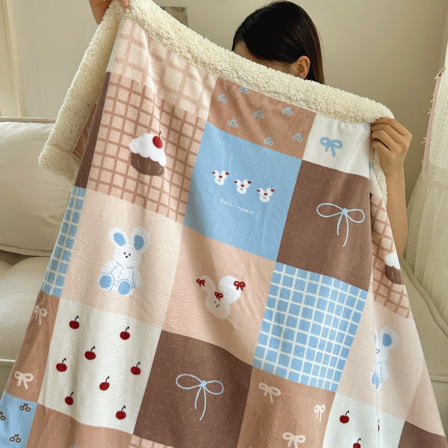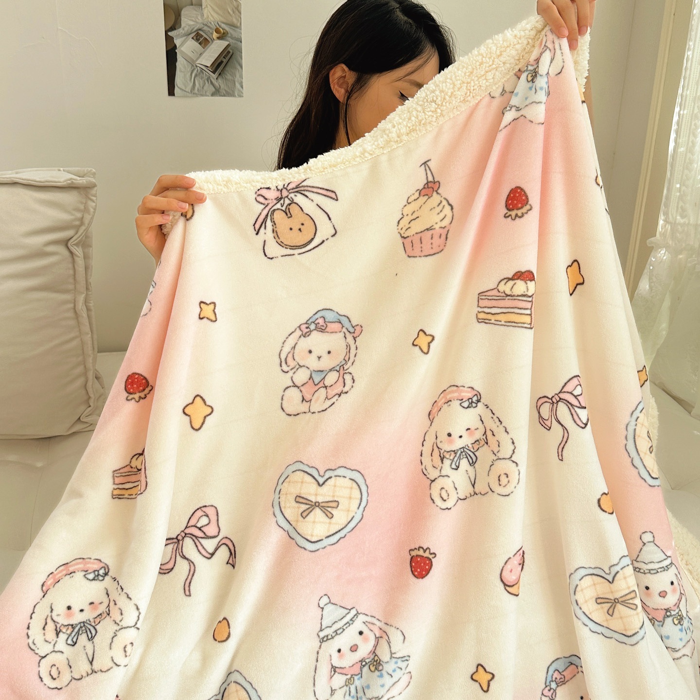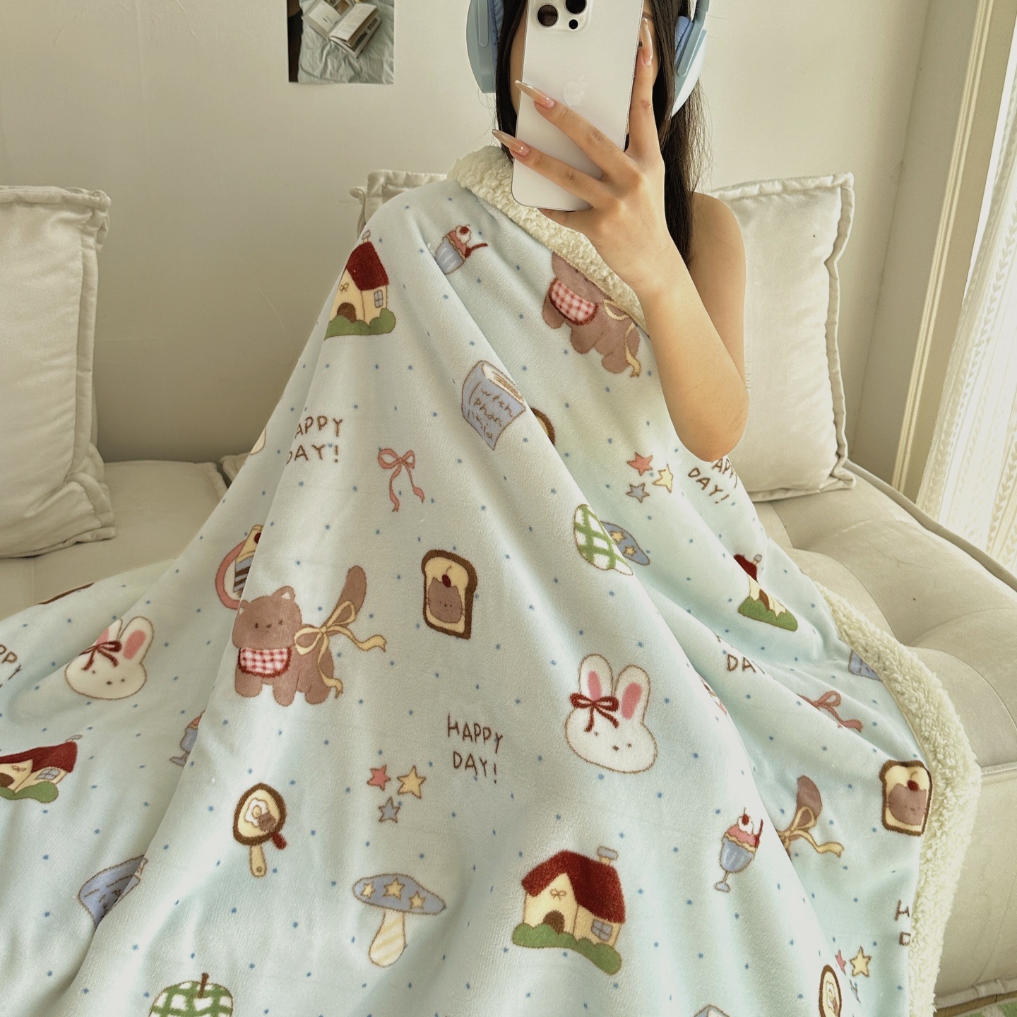 漫画ミルクベルベットブランケットプラスベルベット厚手ラムスキンブランケットエアコンランチブレイクブランケットショールブランケット学生寮小さなキルト