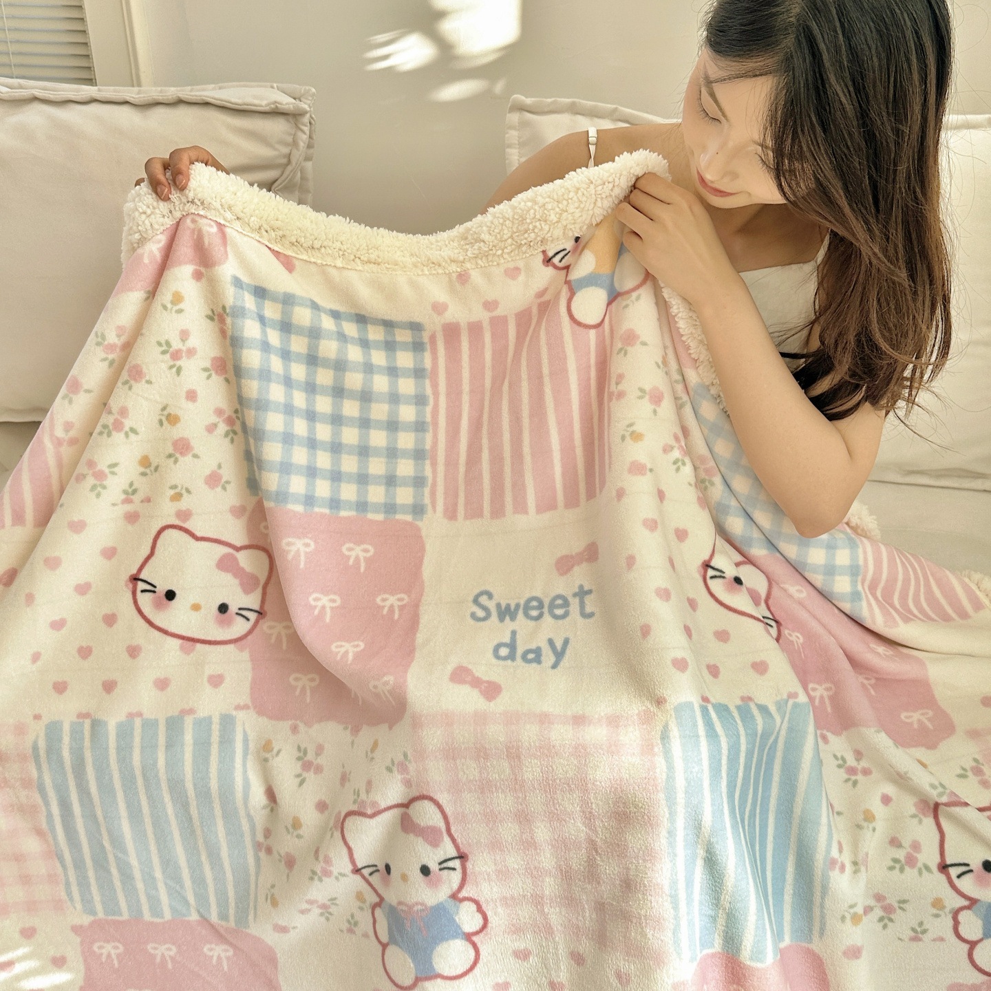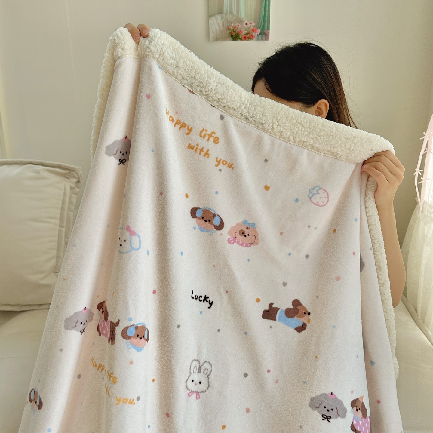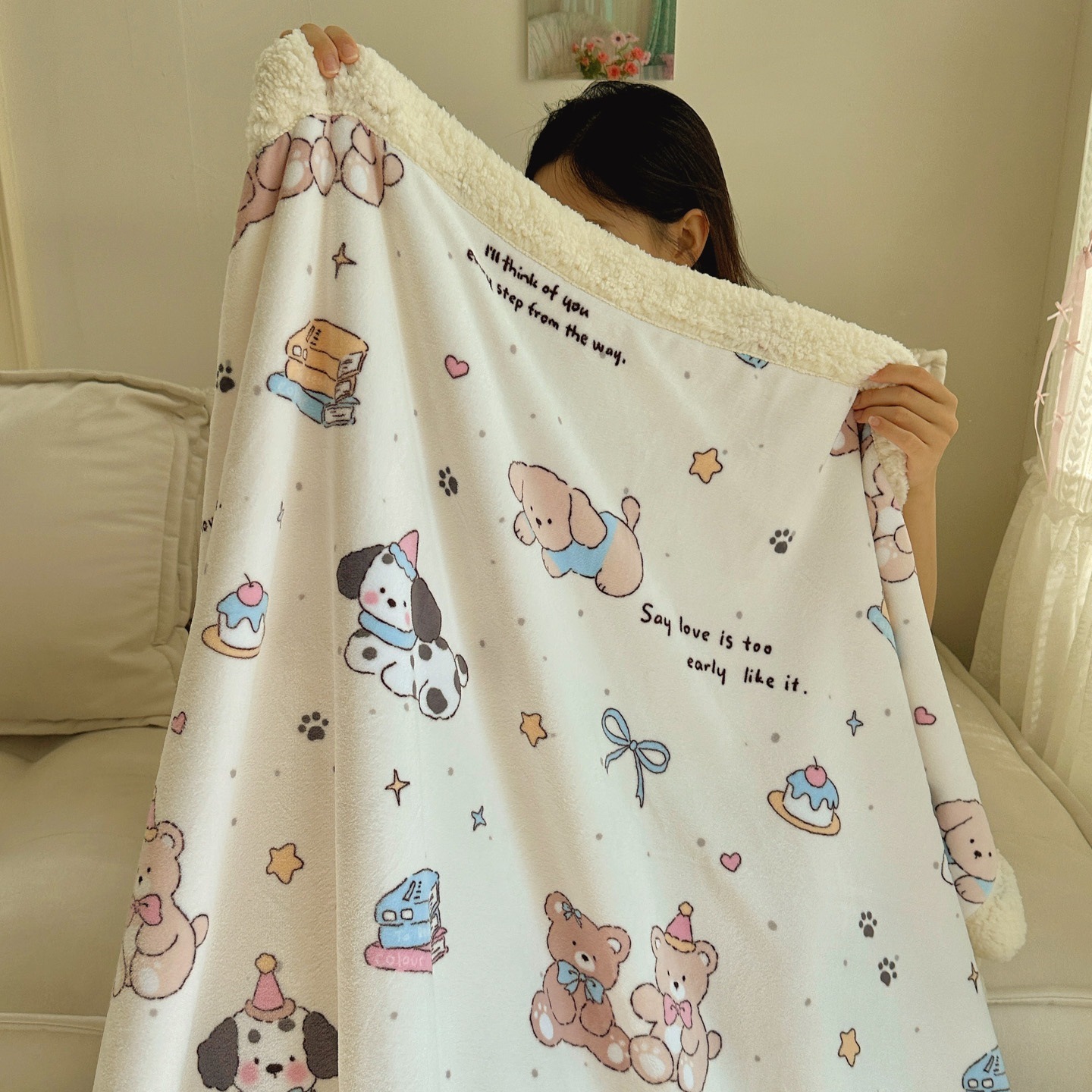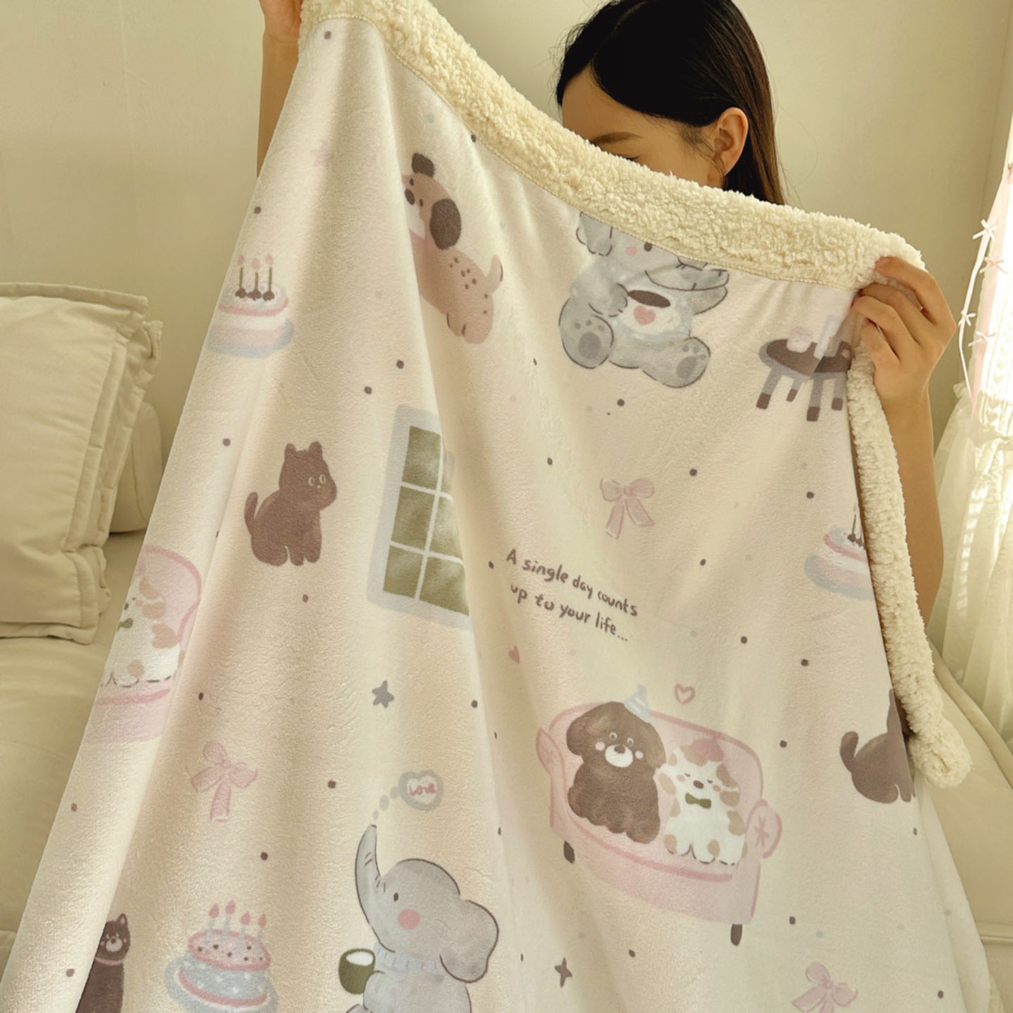 漫画ミルクベルベットブランケットプラスベルベット厚手ラムスキンブランケットエアコンランチブレイクブランケットショールブランケット学生寮小さなキルト