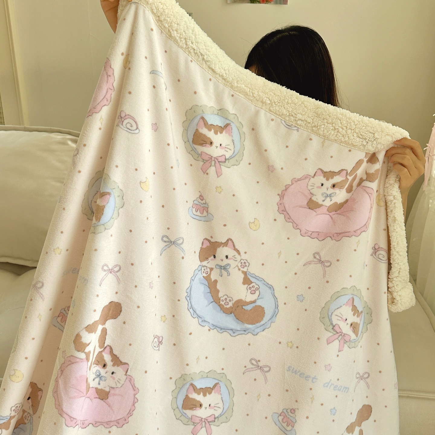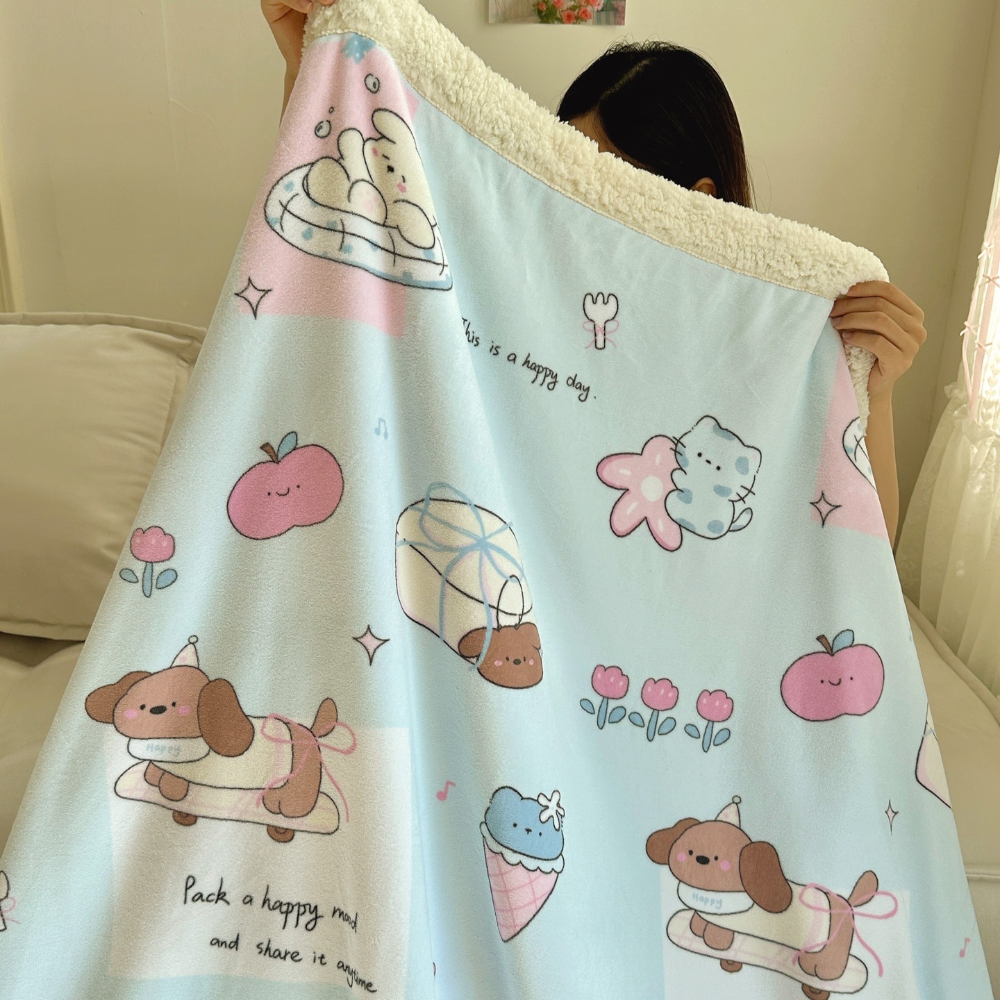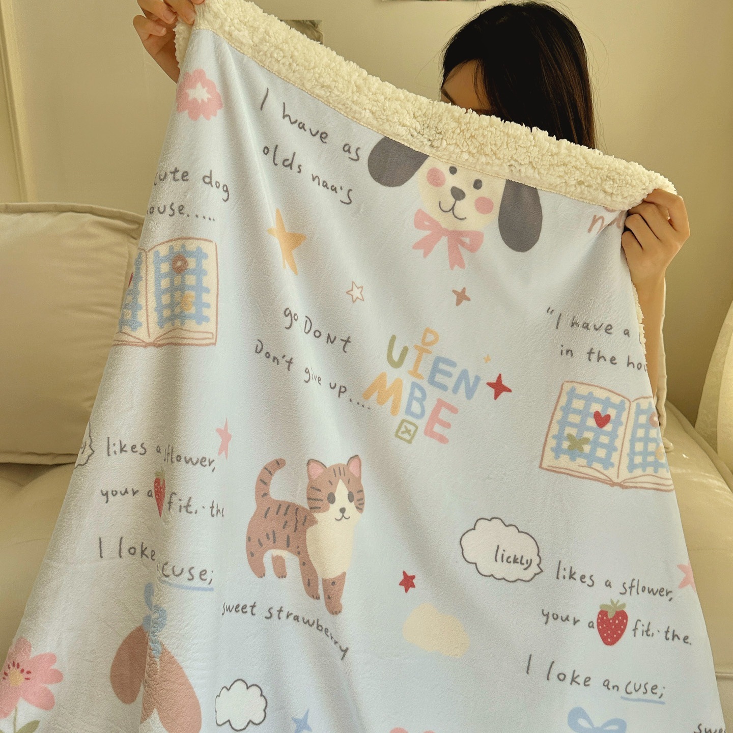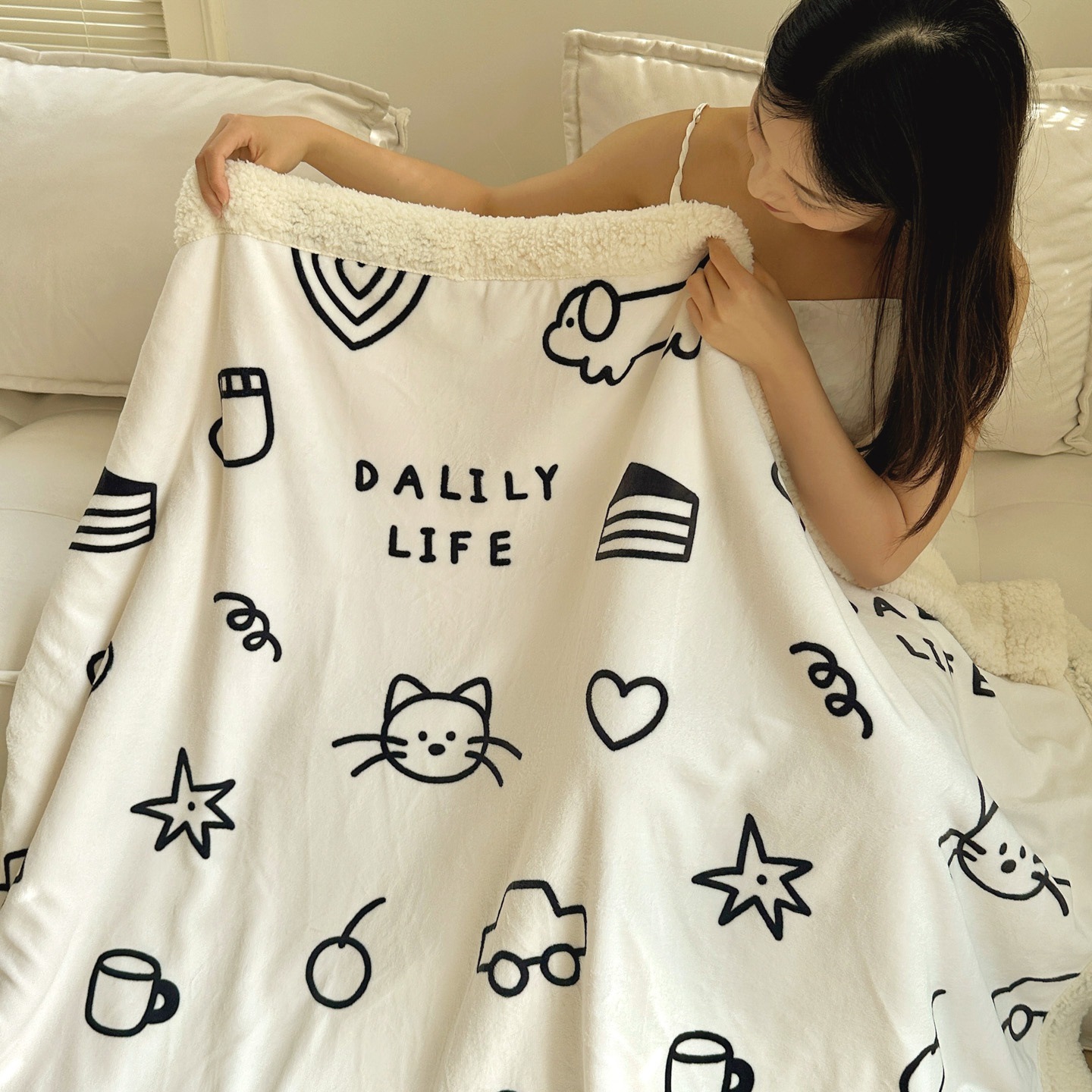 漫画ミルクベルベットブランケットプラスベルベット厚手ラムスキンブランケットエアコンランチブレイクブランケットショールブランケット学生寮小さなキルト
