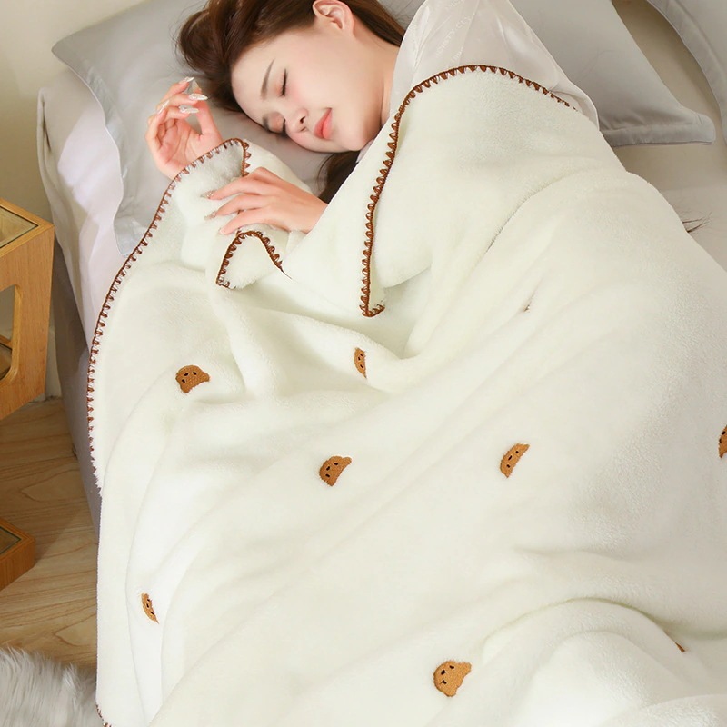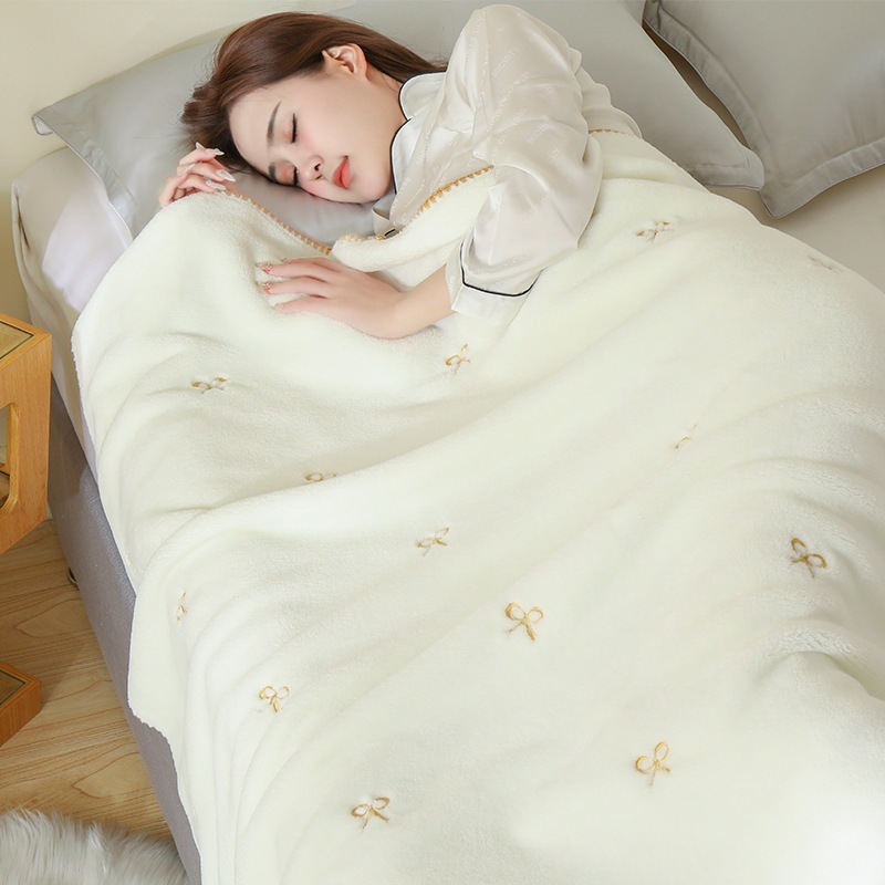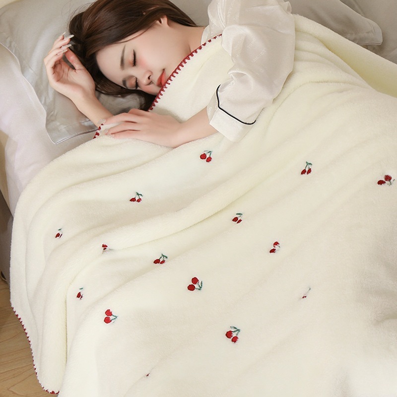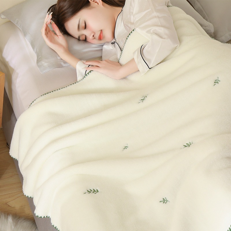 刺繍入りコーラルフリースブランケットショールブランケットオフィス用お昼寝用ブランケット厚手ソファーカバーブランケットエアコン用ブランケットベッド用