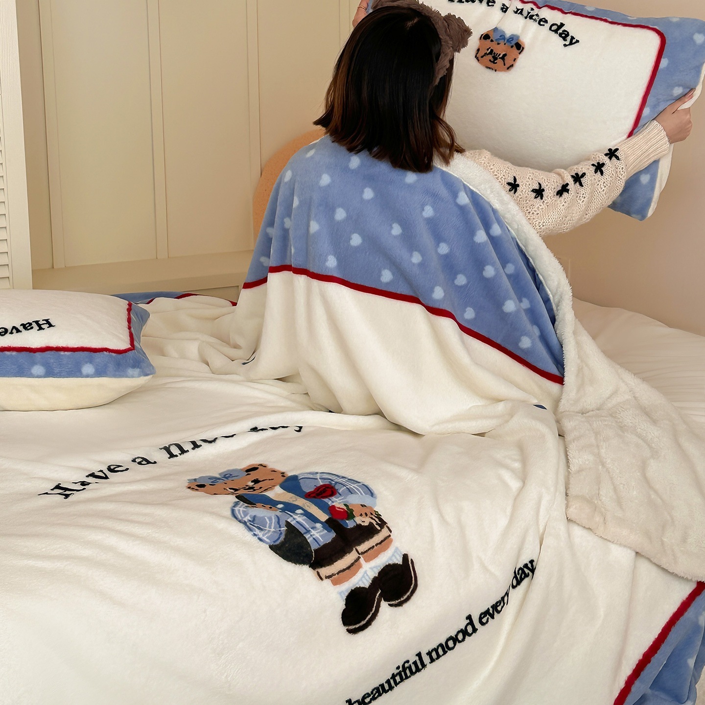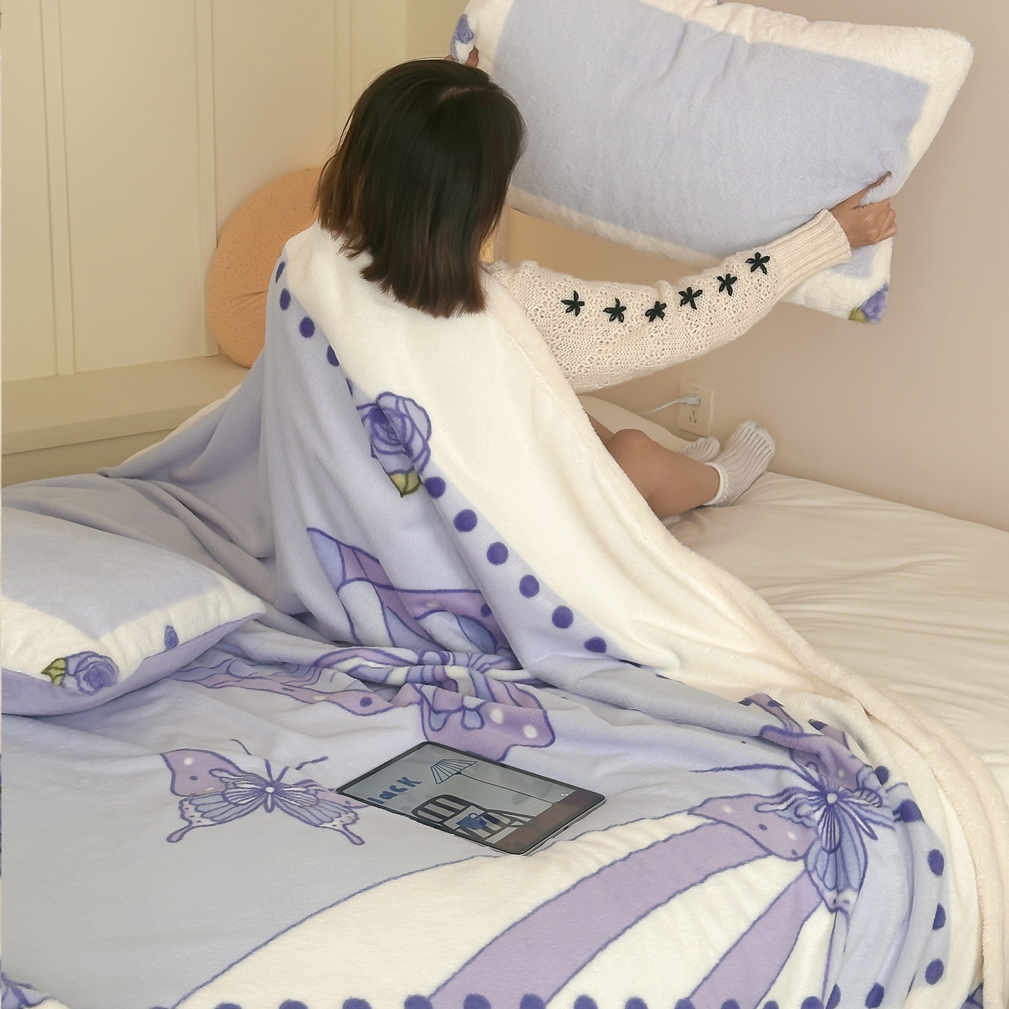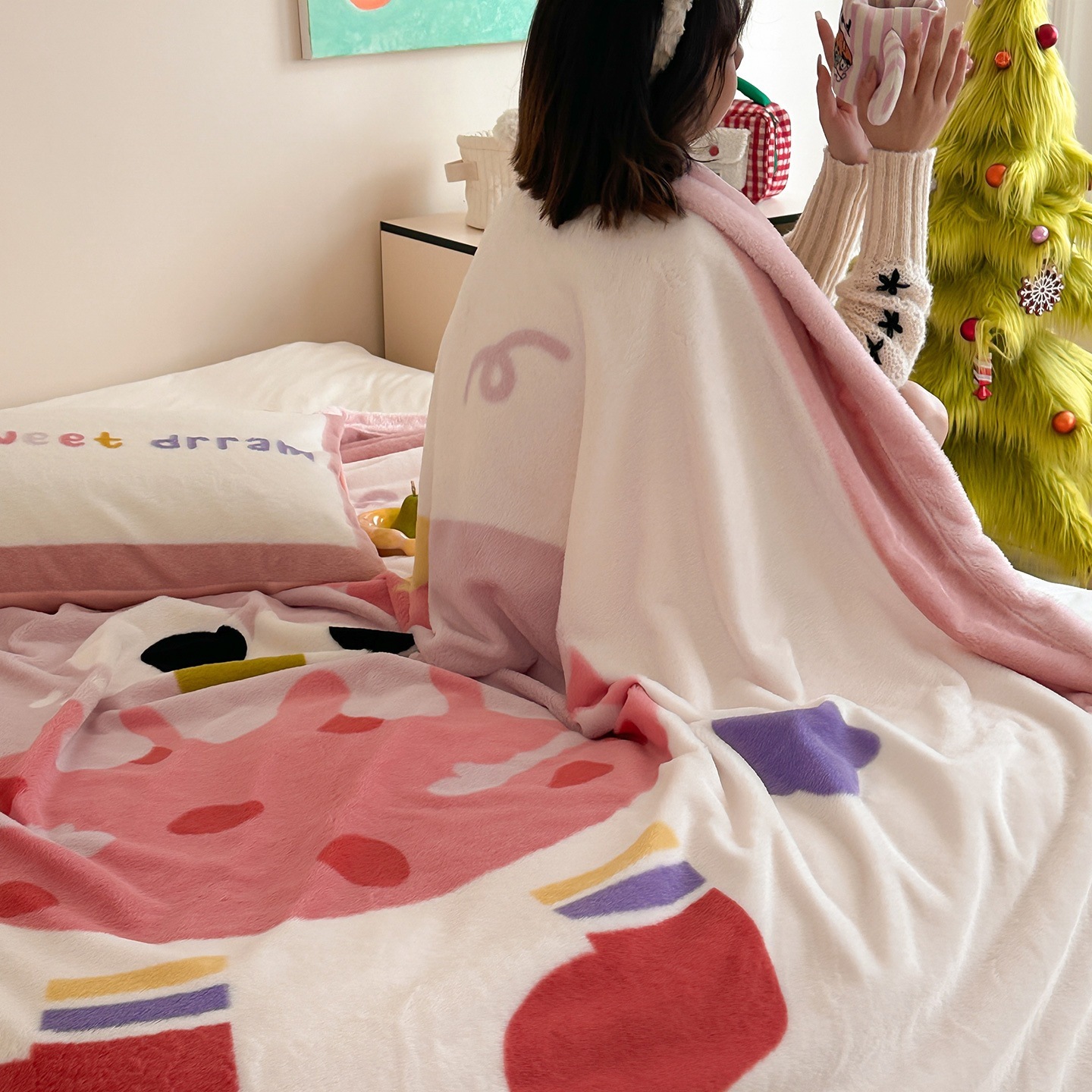ウサギのフリースAクラスの母子用お昼寝用ブランケット冬用厚手漫画両面シングルオフィスソファカバーブランケット保温性あり