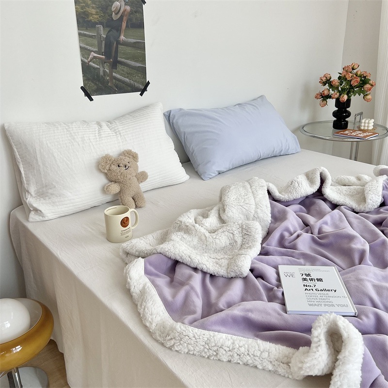 無地ブランケット二層ソファレジャーブランケット暖かいブランケットカメリアミルクベルベットとラムスキンブランケット新しいスタイル