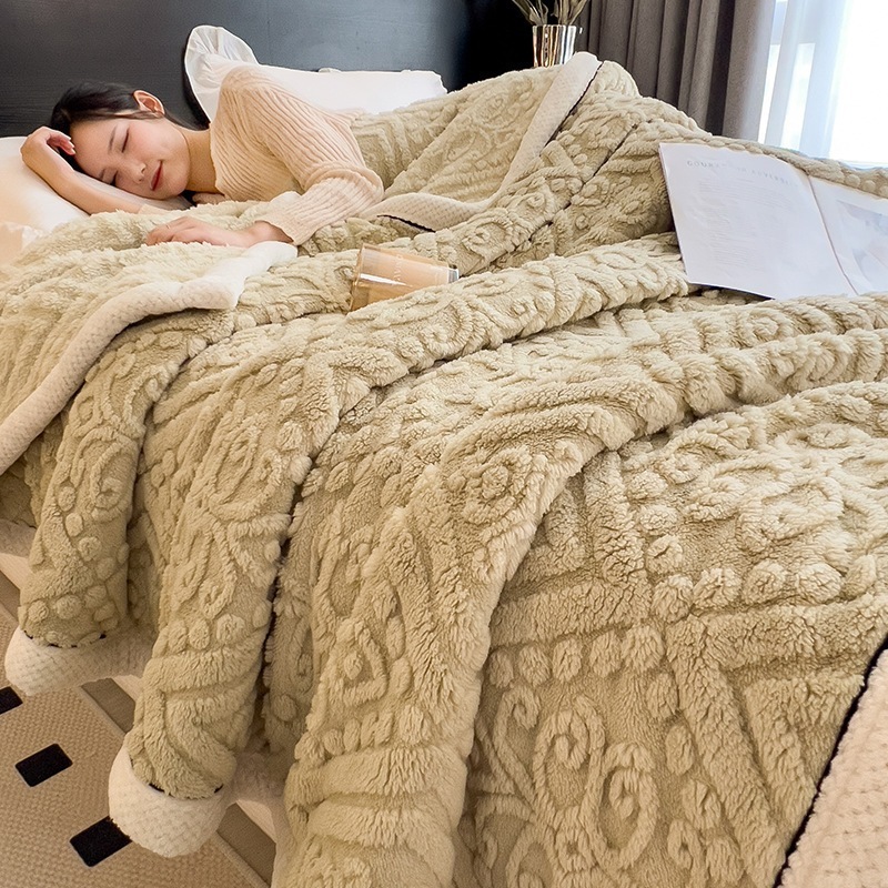 ミルクフリースブランケット冬用厚手コーラルフリースブランケットオフィス用お昼寝用ソファ用フリースブランケット