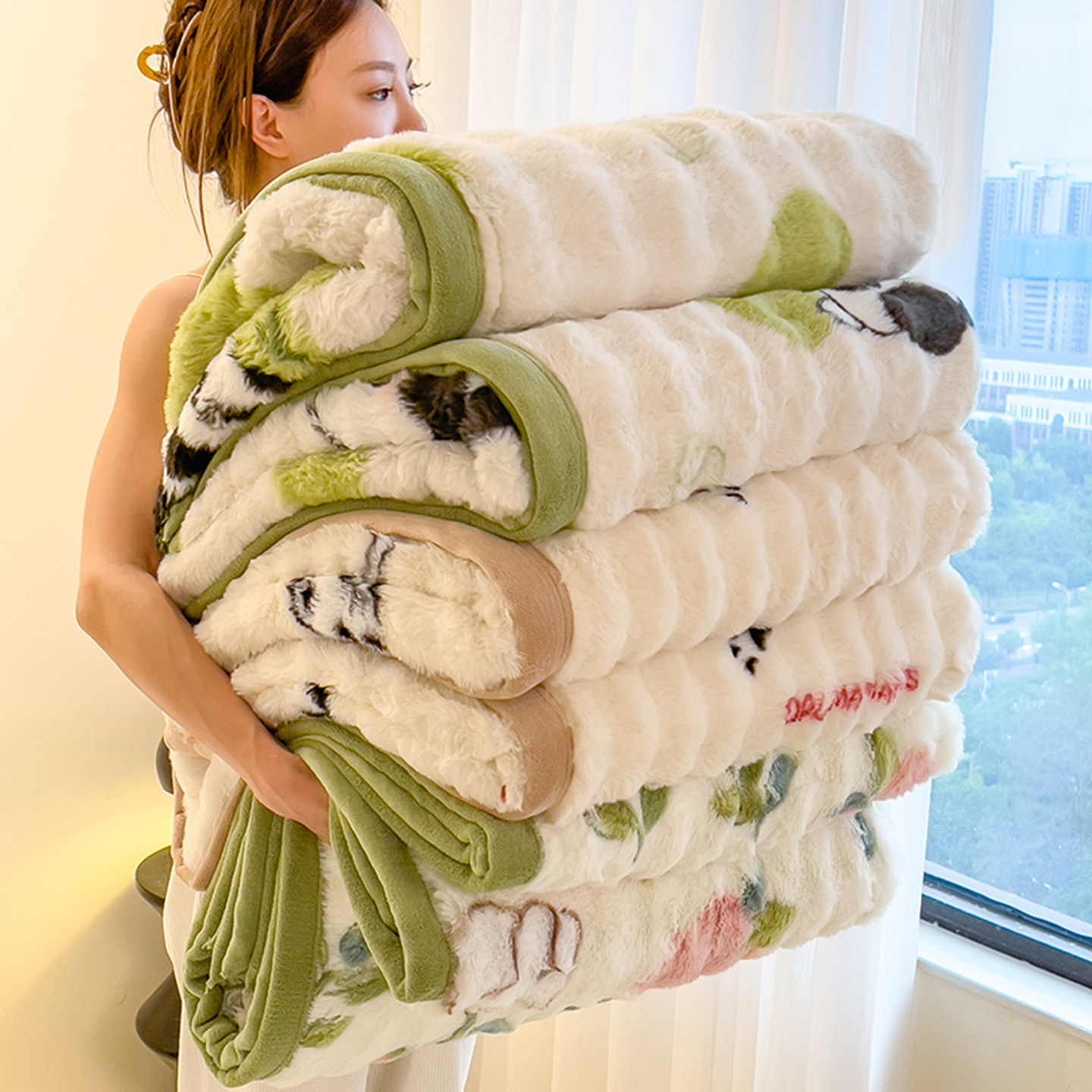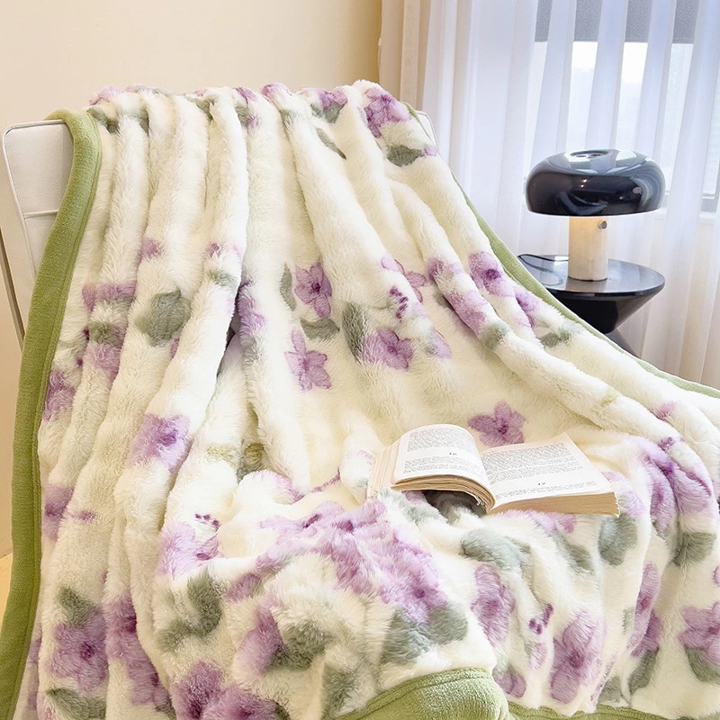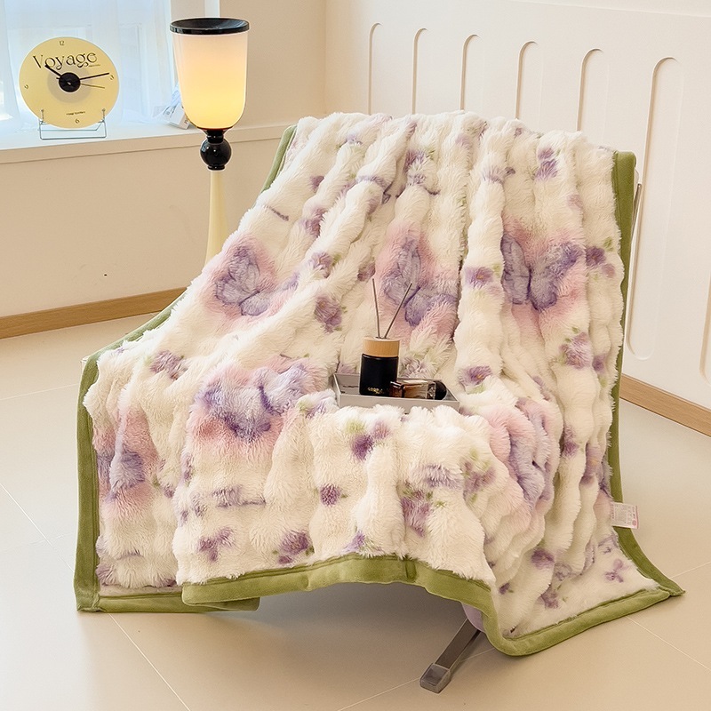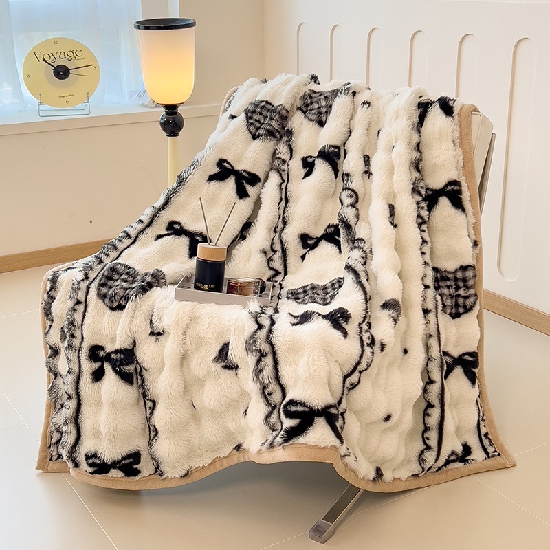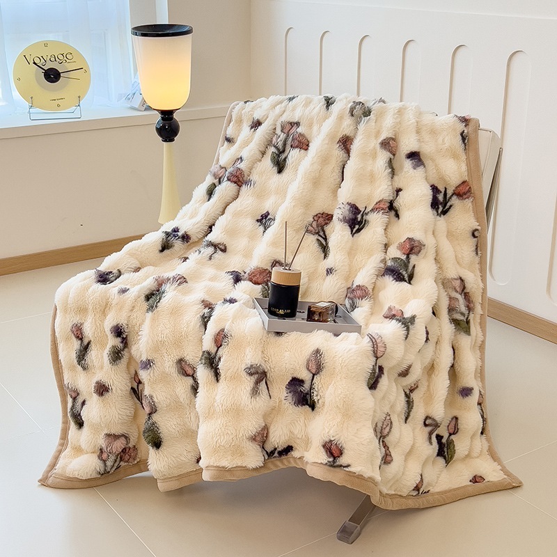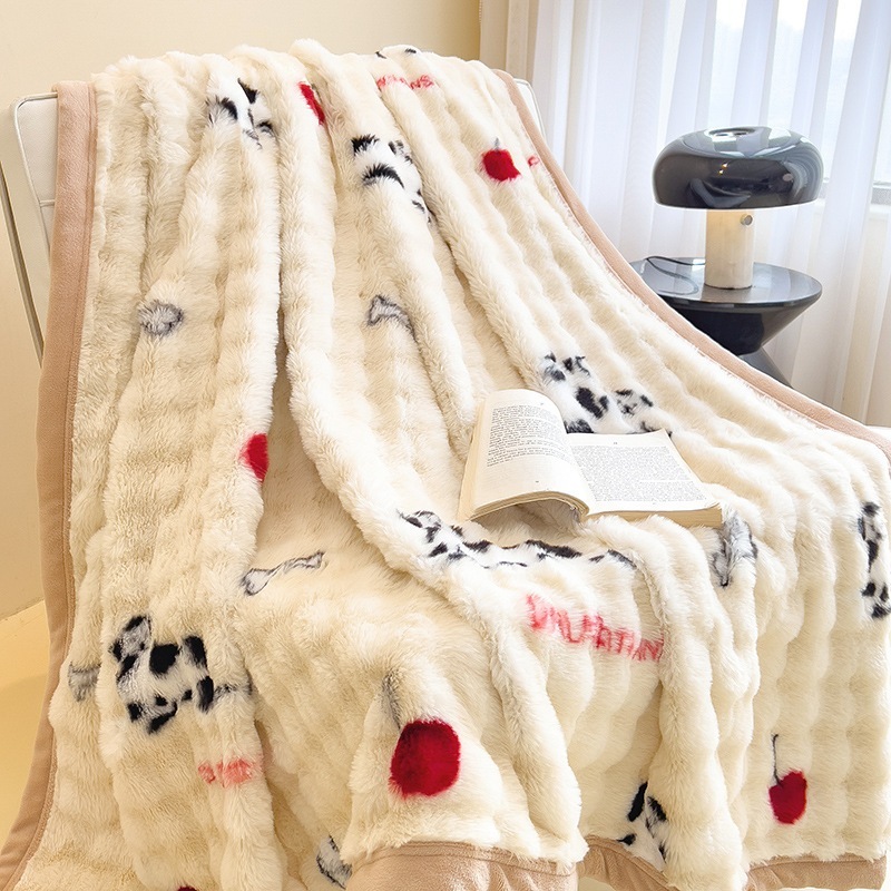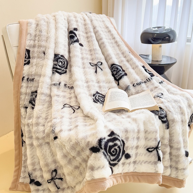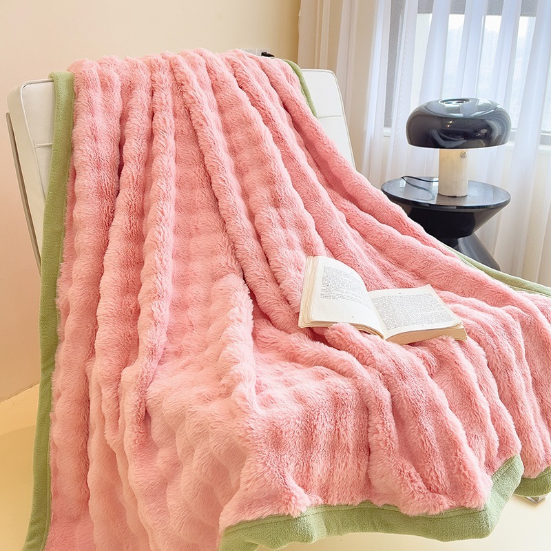 ウサギの毛皮のブランケット厚くて暖かいフランネルブランケットオフィスのお昼寝用ブランケット冬用コーラルフリースブランケットミルクフリース