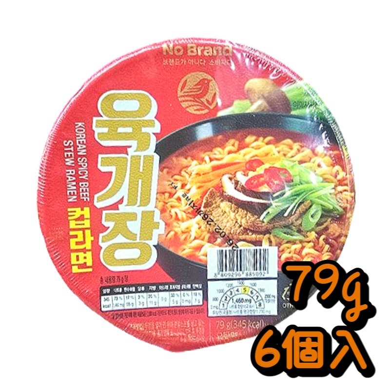 No Brandユッケジャン カップラーメン 79g×6個 韓国カップ麺 ピリ辛 スープラーメン 即席ラーメン 韓国インスタントラーメン 牛肉スープ風