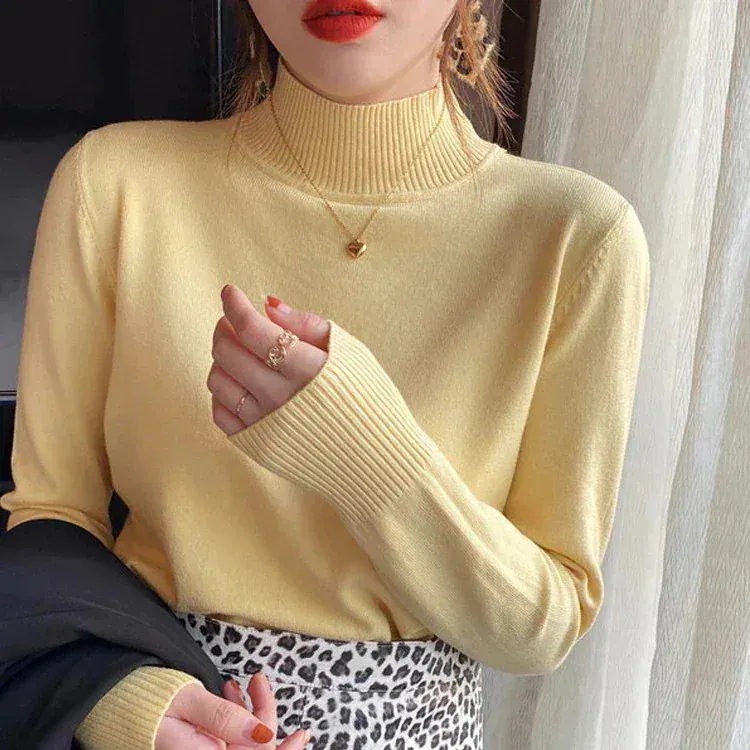 韓国ファッション リブニットトップス 無地 長袖 スリット リブ ストレッチ ニットハイネック Tシャツツ オフタートルネック レディース タートルネックニット リブ
