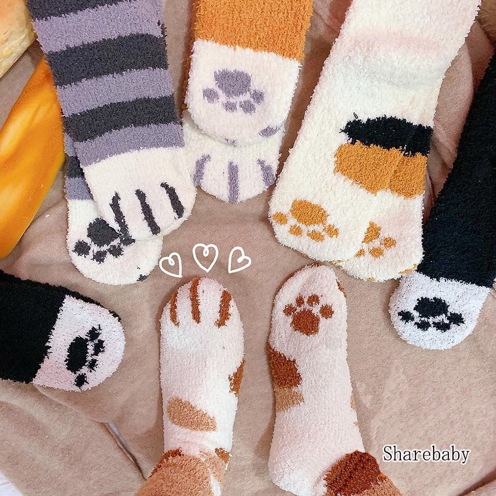 5足セット レディース 防寒 靴下 もこもこソックス ふわふわ 猫の手肉球デザイン あったか 自宅 睡眠 秋冬 就寝ソックス レディース ルームウエアギフト