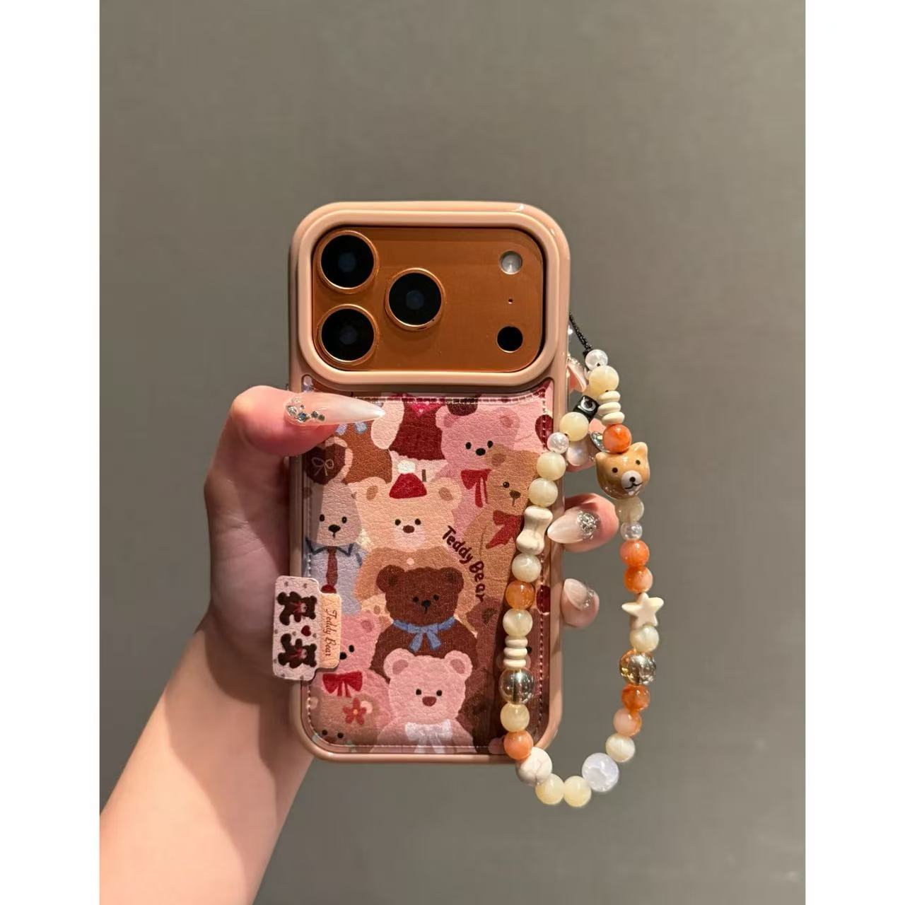 【速達!】アイフォン17 promaxアップル16携帯ケース1514チェーン13に適した革製茶色ベースのフルスクリーンベア