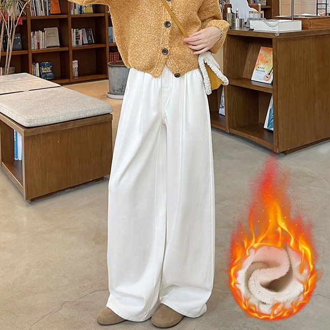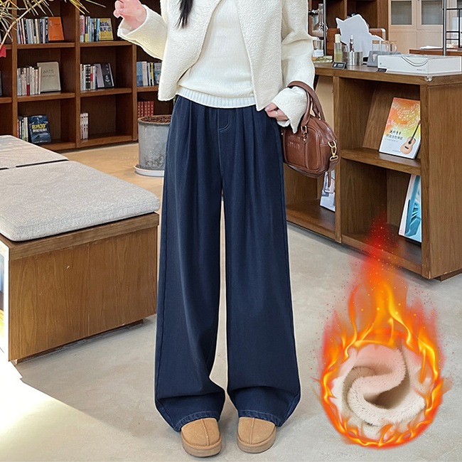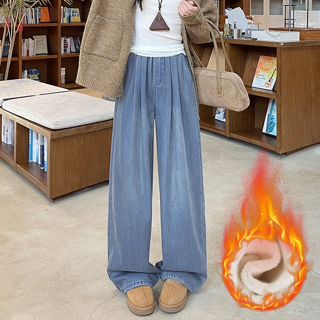 裏起毛 デニム 裏ボア ジーンズ ポケット付き パンツ デニムパンツ レディース ワイドパンツ ワイド 体型カバー 脚長効果 動きやすい ジーパン ボトムス ストレート ゆったり ハイウエスト ストレ