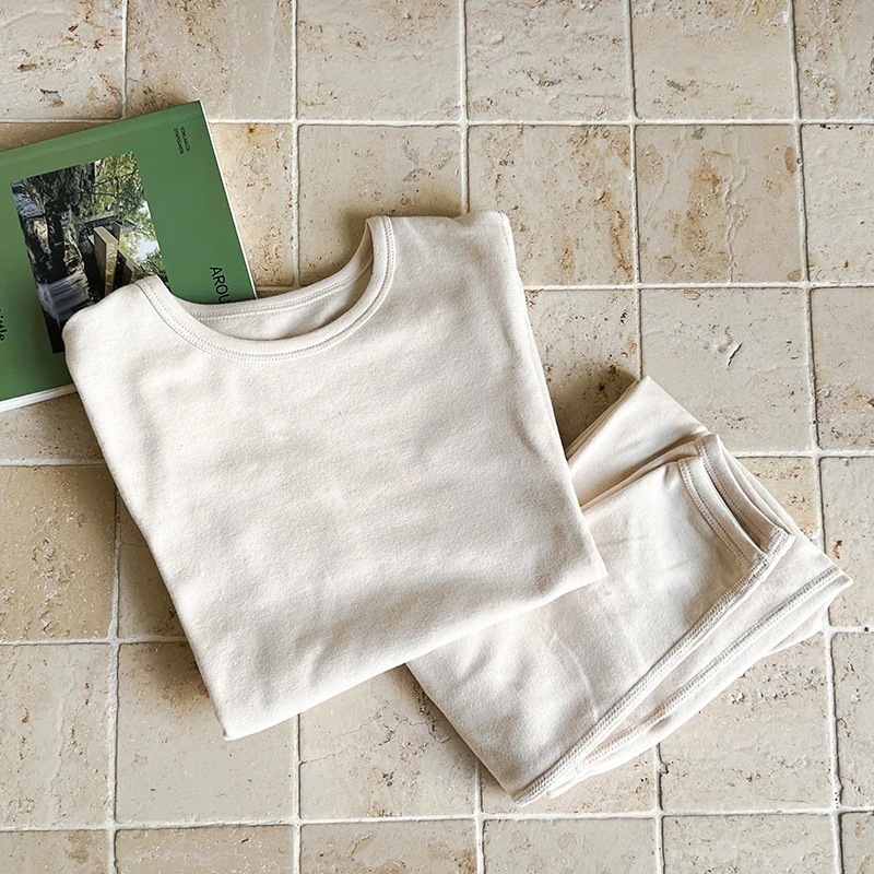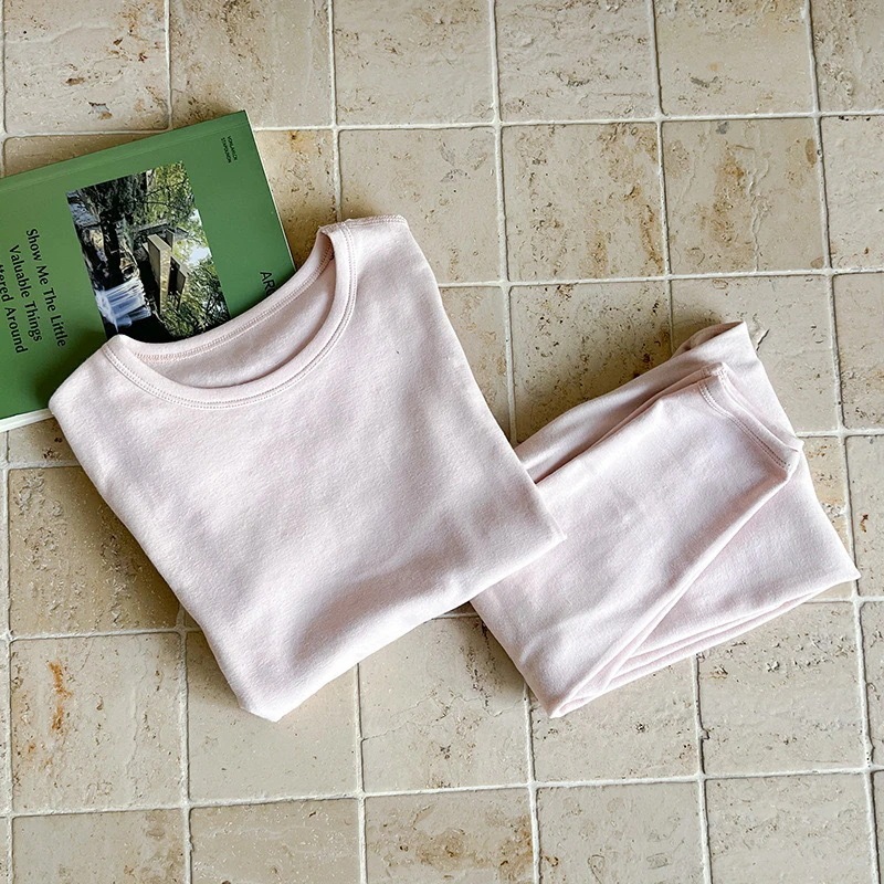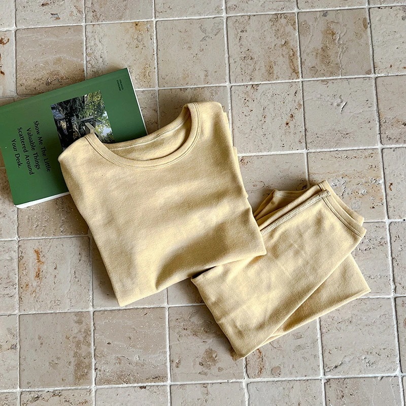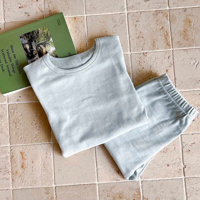 キッズ パジャマ 中大サイズ男女児用ホームウェア 子供用ノーワイヤー肌着&ズボン 単色パジャマ