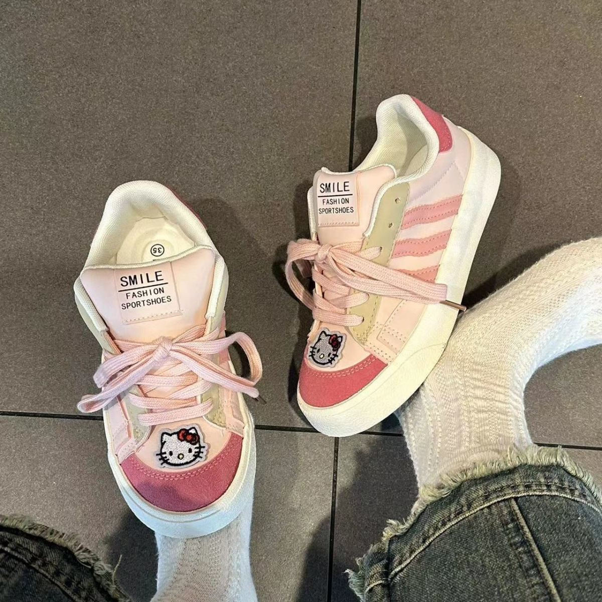 Kitty猫縞板靴子供の厚い底運動婦人靴キャンパス秋の新型レジャー百合潮