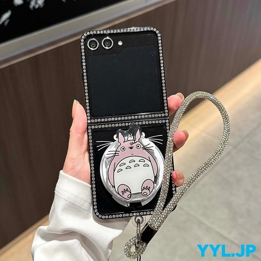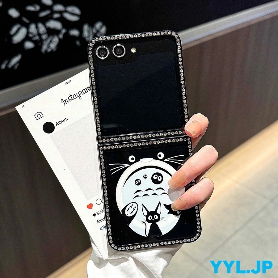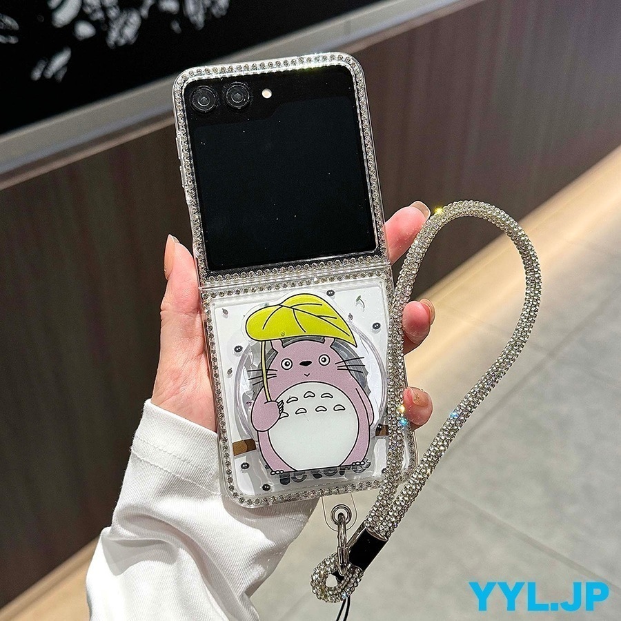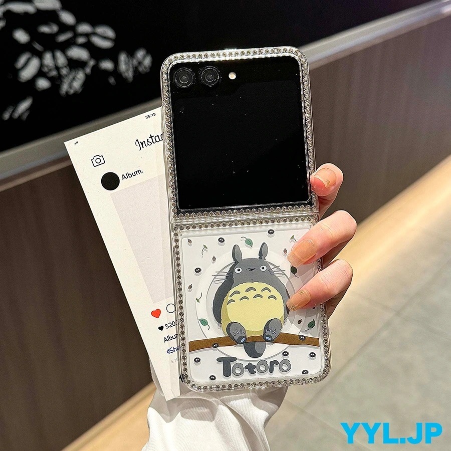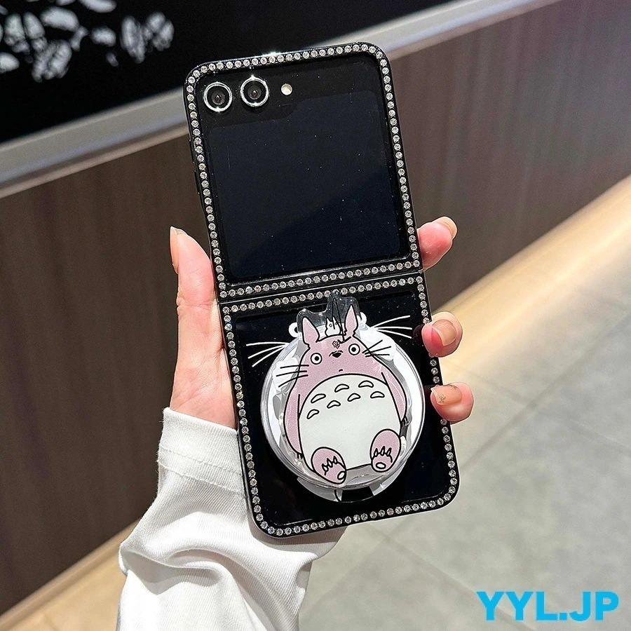 galaxy z flip6 ケース トトロ おしゃれ galaxy z flip5 ケース キャラクター かわいい ダイヤモンド枠 キラキラ