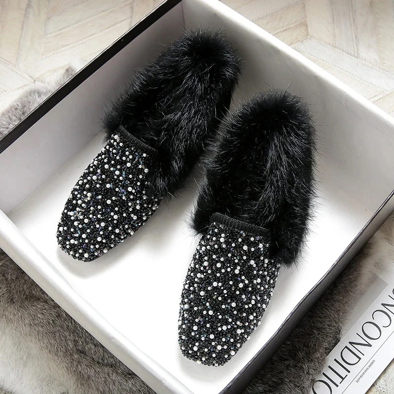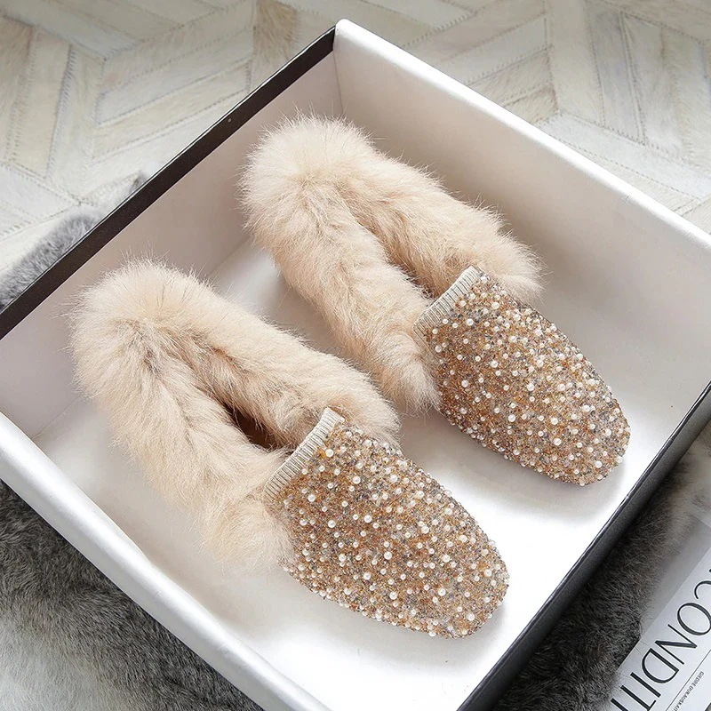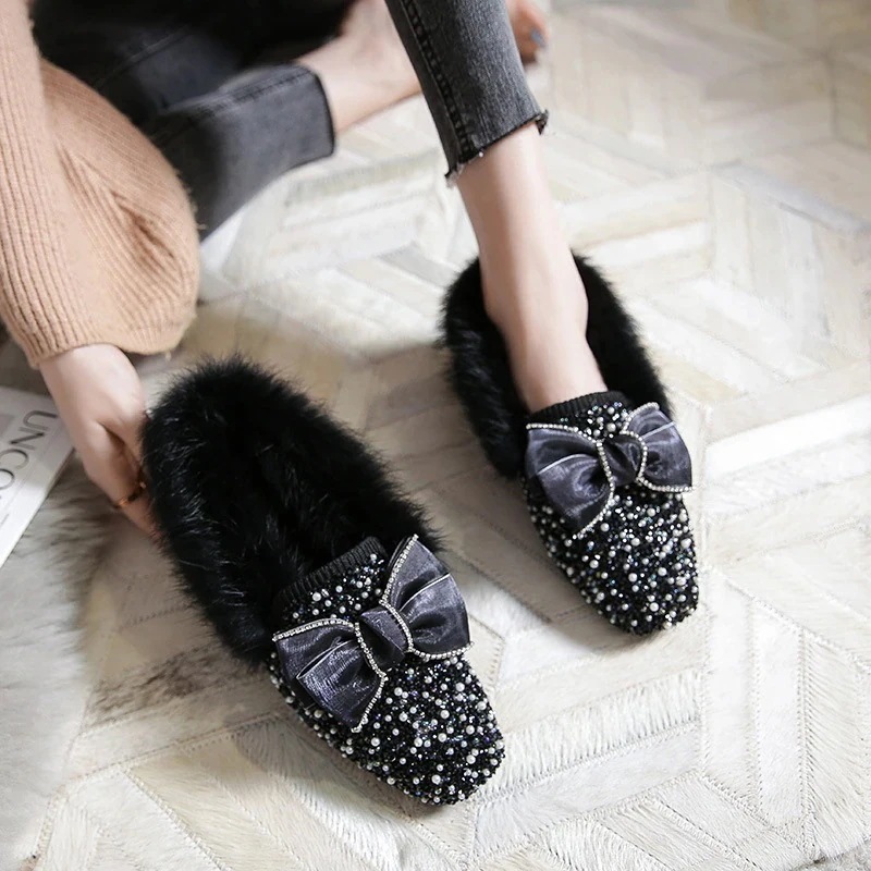 春秋の新型プラッシュ靴と綿スリッパの厚い底パンプススリッパの女性は大きいサイズの41-43モカシン