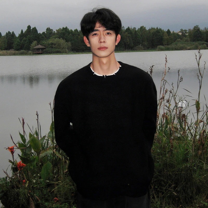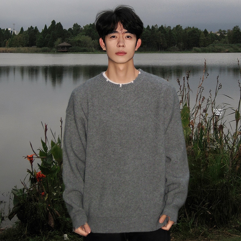 秋冬メンズ ゆったり着心地のベースレイヤー韓国風 合わせやすいプルオーバーニットセーター