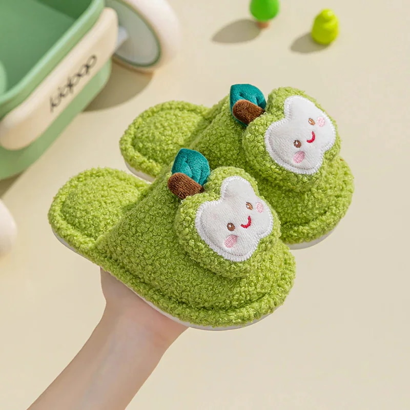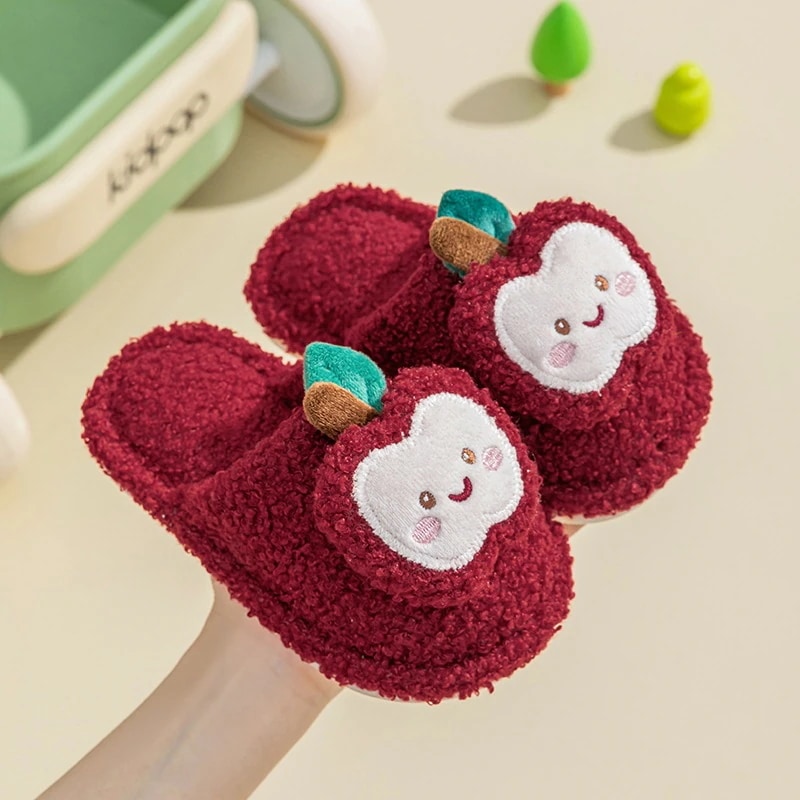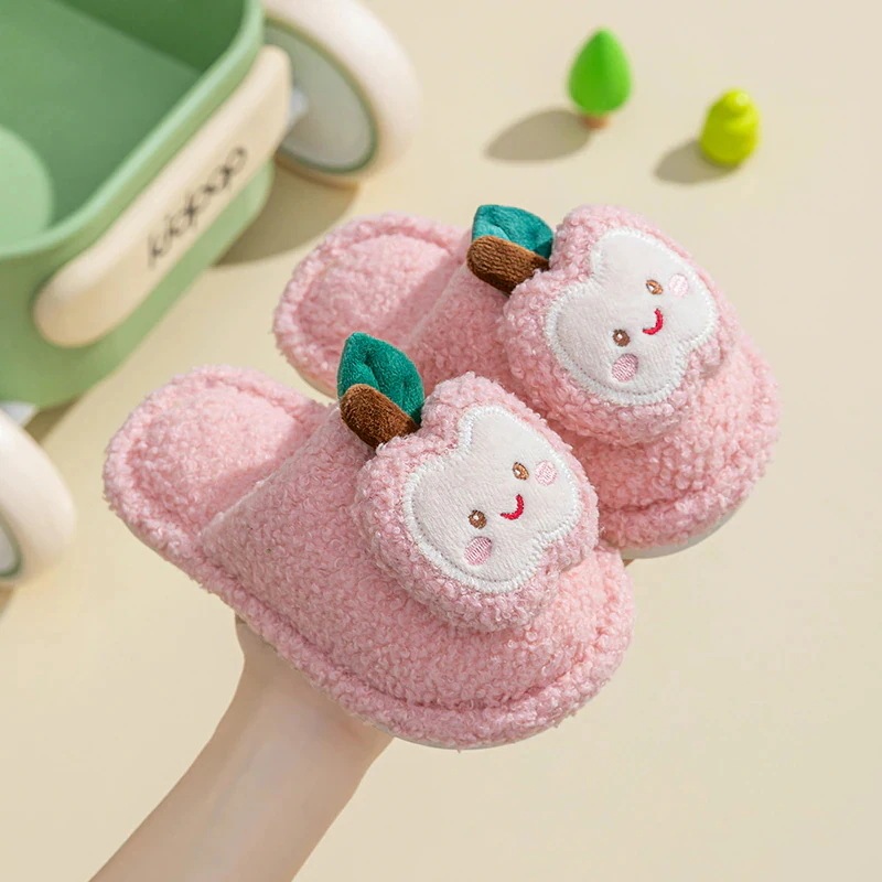 【今日限定】 子供 秋冬 防寒 スリッパ 子供用綿スリッパ 女の子用 秋冬新作 ホームウェア 室内用 キャラクターデザイン リンゴ柄 可愛いスリッパ