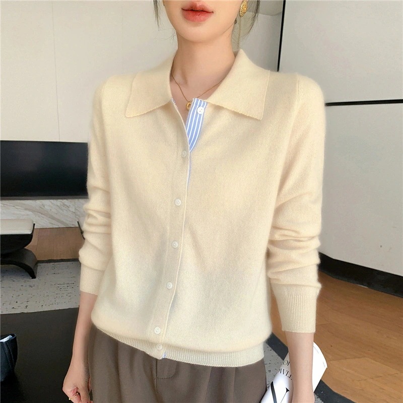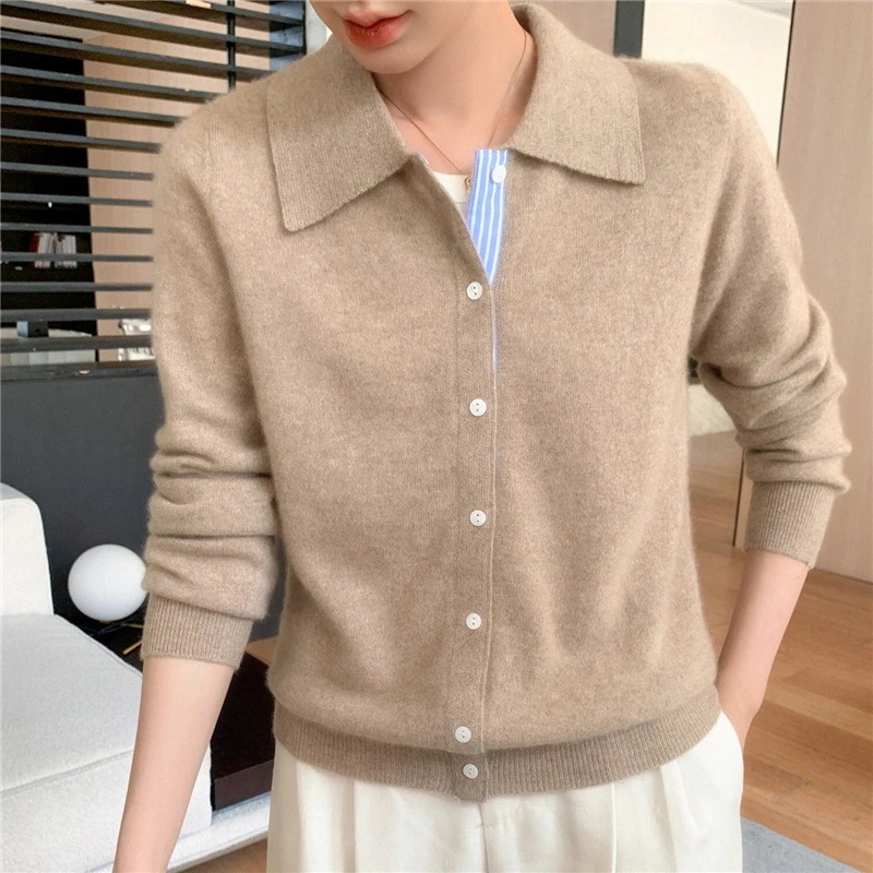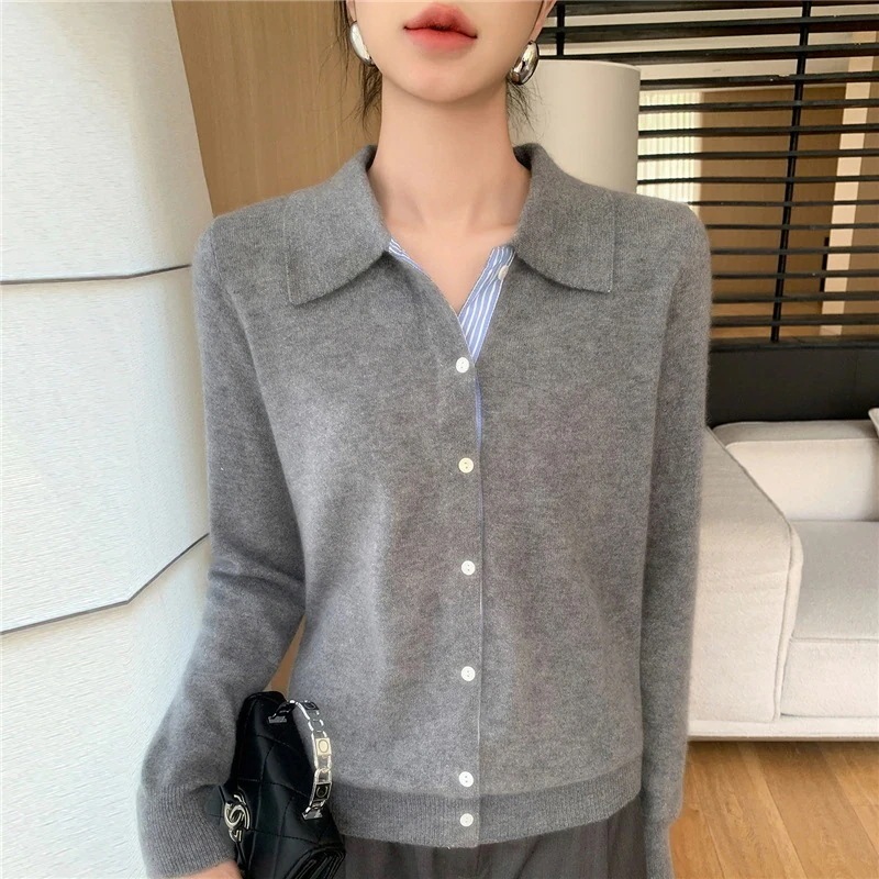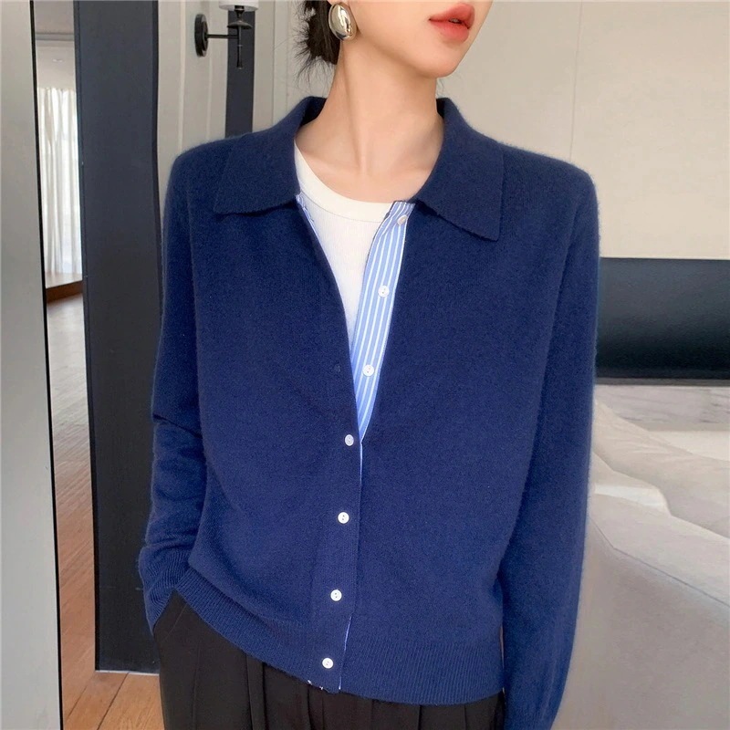 ポロ襟ニット シングルボタンカーディガン ファッションニットポロカラーセータートップス