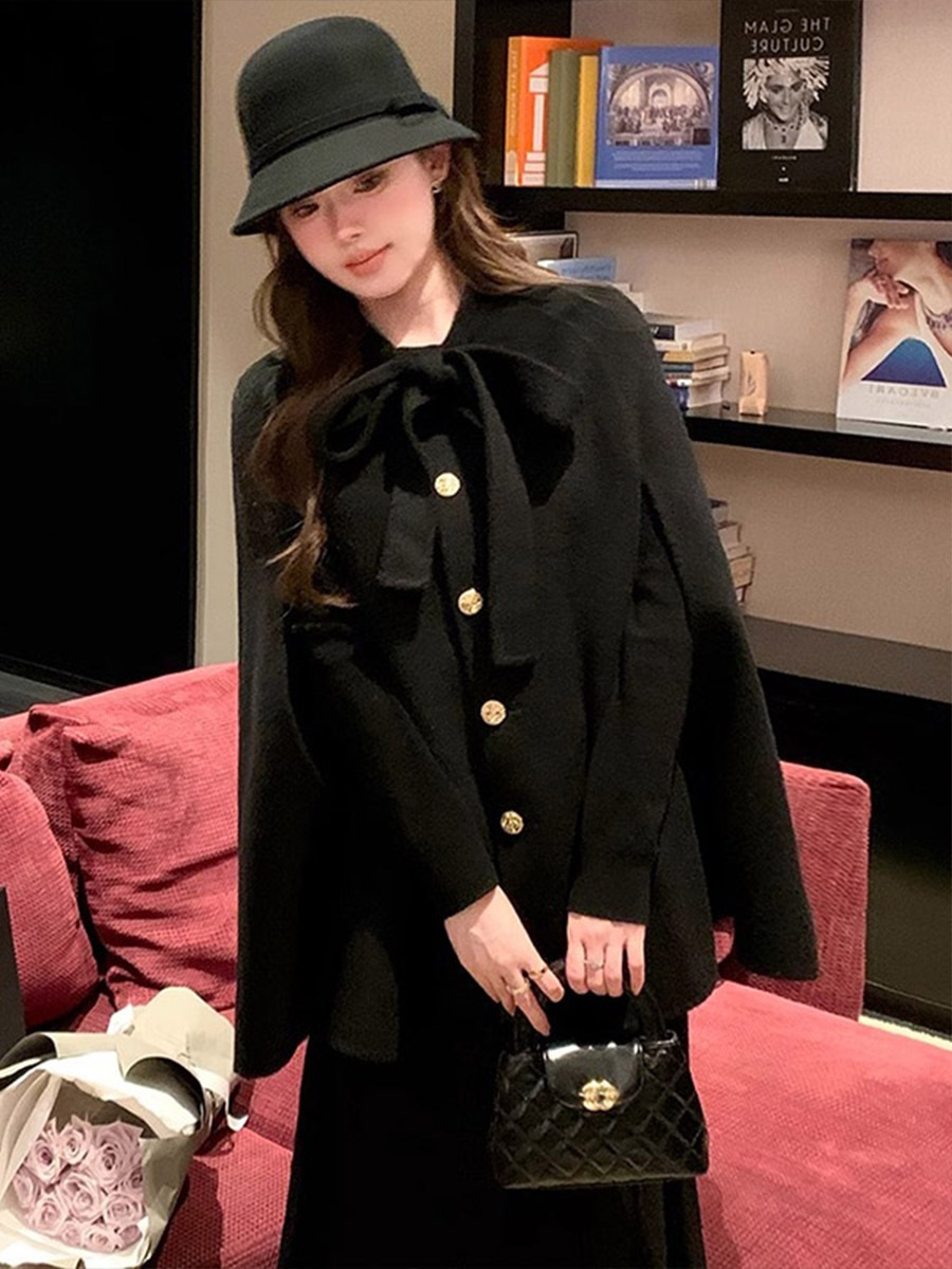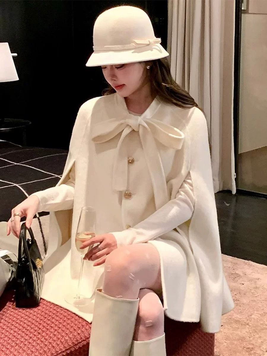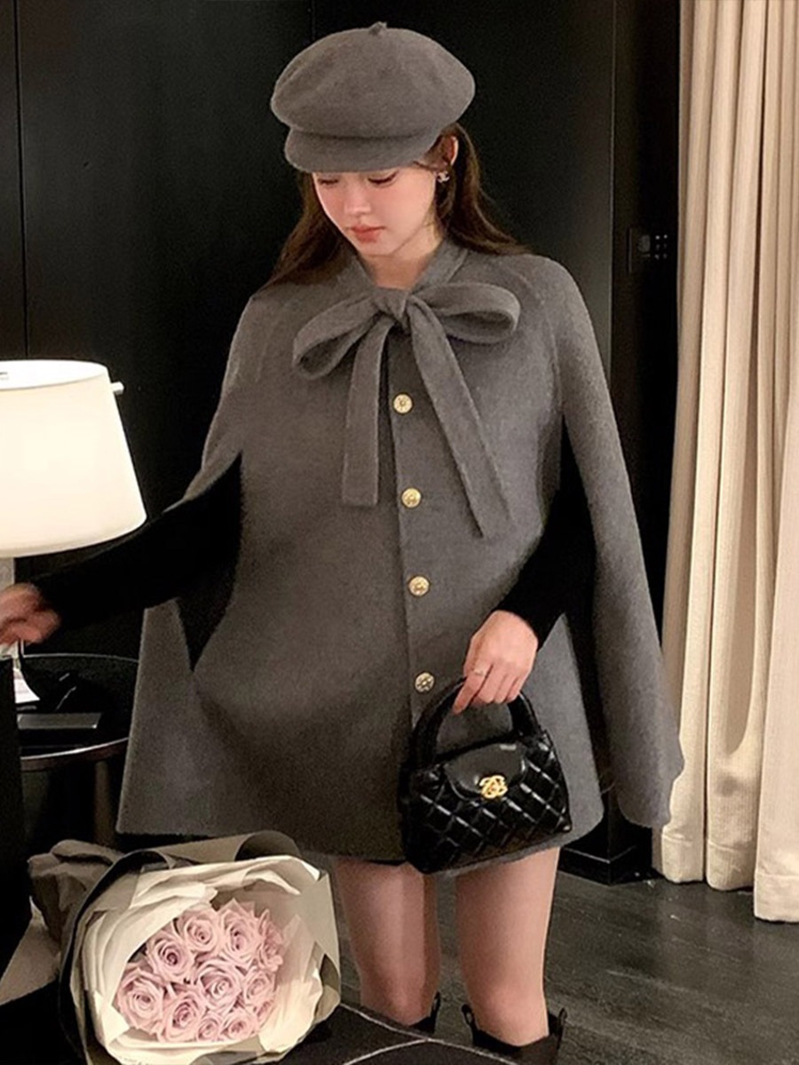 リボン付きケープコート レディース ケープコート ポンチョ レディース リボン付きコート 秋冬アウター フォーマル風 体型カバー 高見えコーデ フェミニンアウター クラシカルコート 上品ファッション