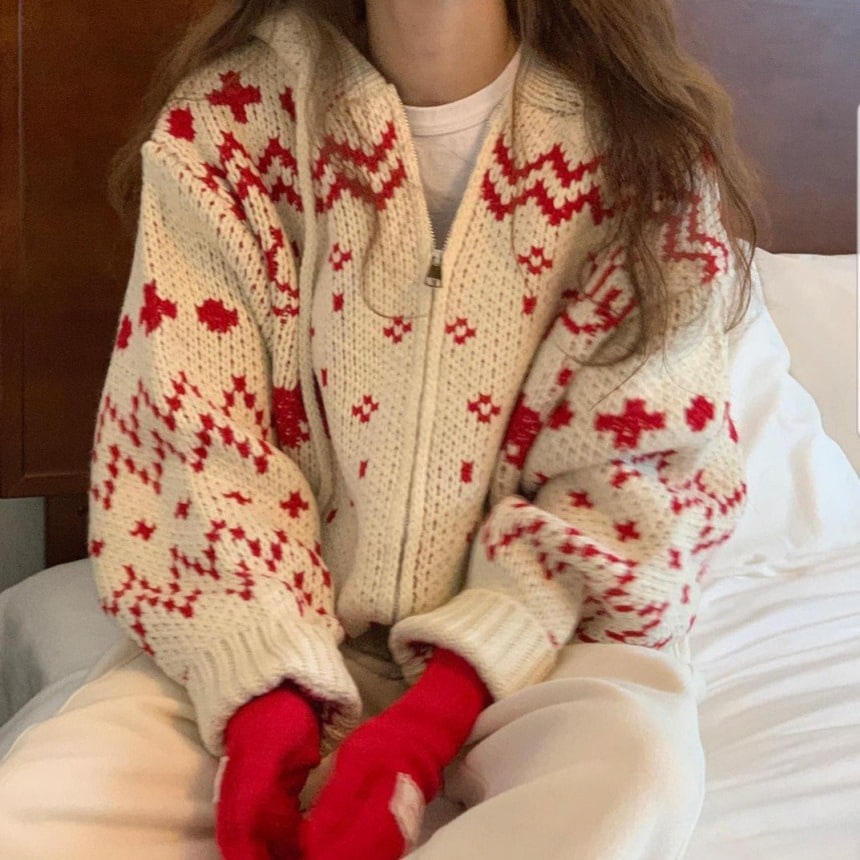 新商品韓国版クリスマスセーター怠惰な風レトロチャックカーディガンフード付きニットセーターコート女性11231144