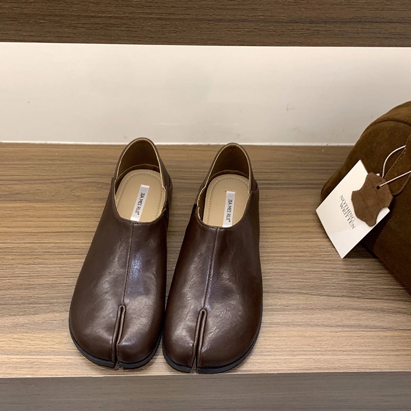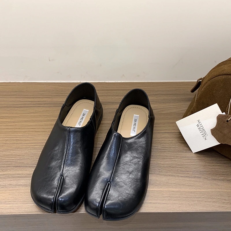 【本日限定】平底分指豚足靴単靴女性靴春秋の馬蹄豚足靴黒の革靴を一足で踏む