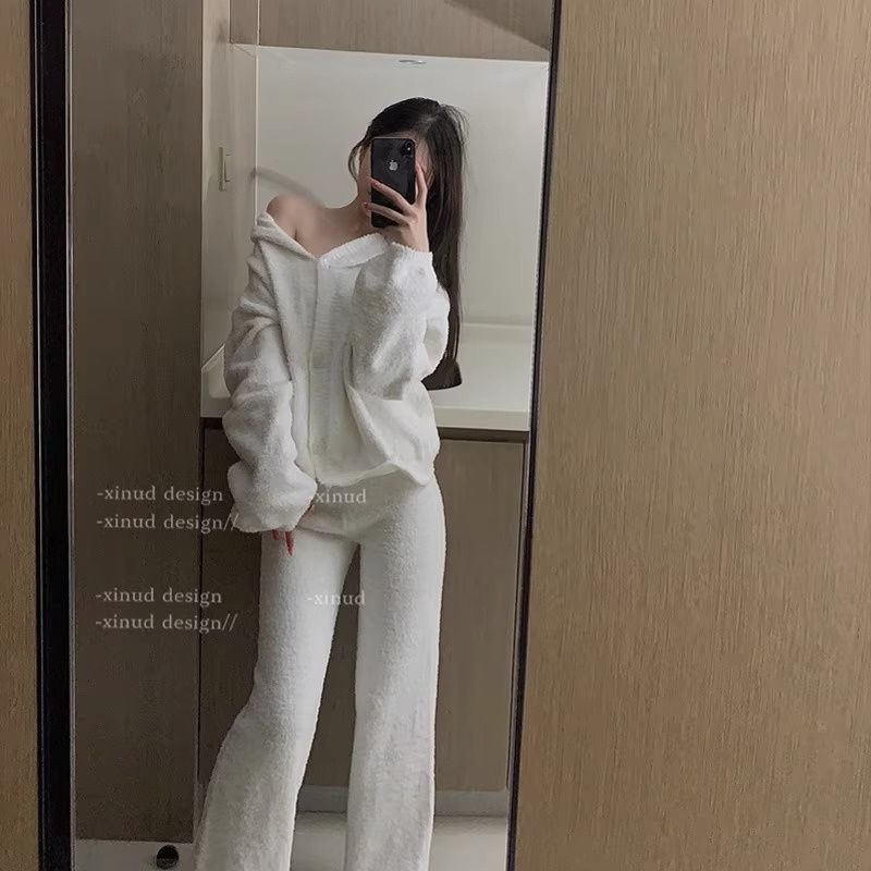 セットアップ 涼しく楽ちんセットアップファッション 怠惰 秋冬 ワイドパンツ カジュアル おしゃれ 着痩せ 流行り 可愛い ウサギ耳パジャマ3点セット