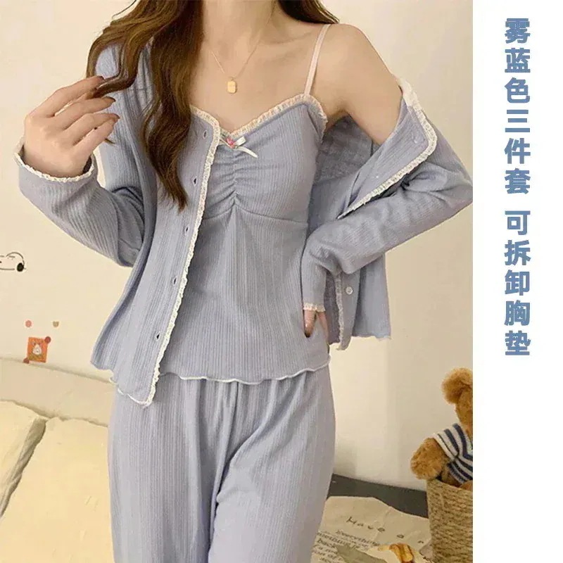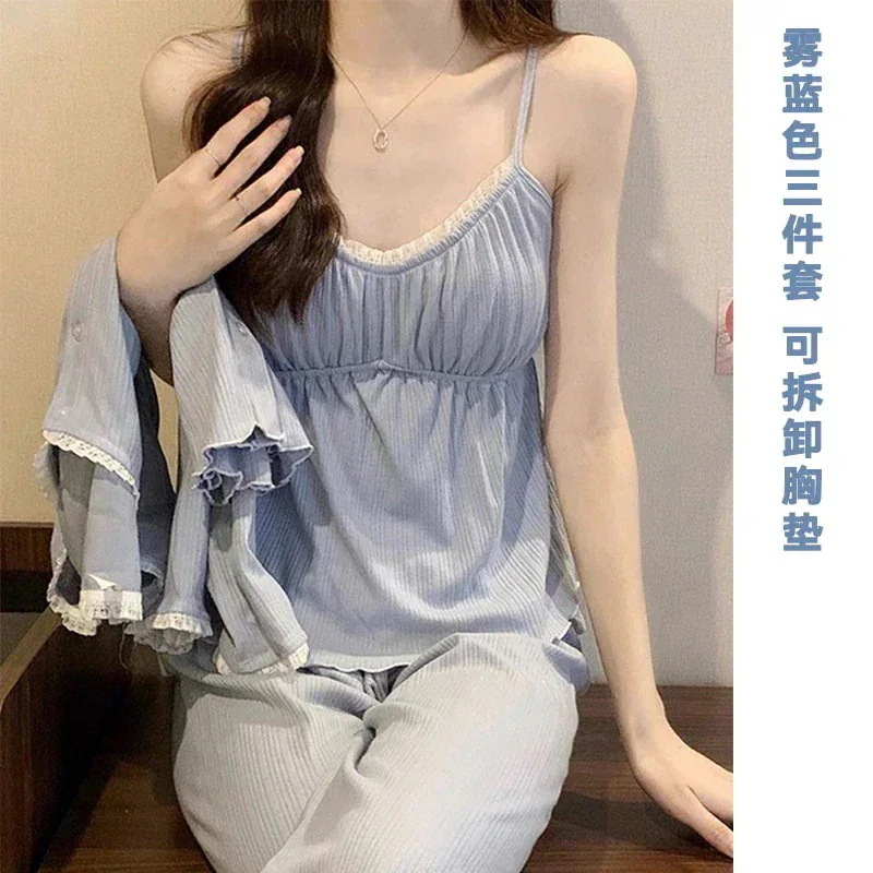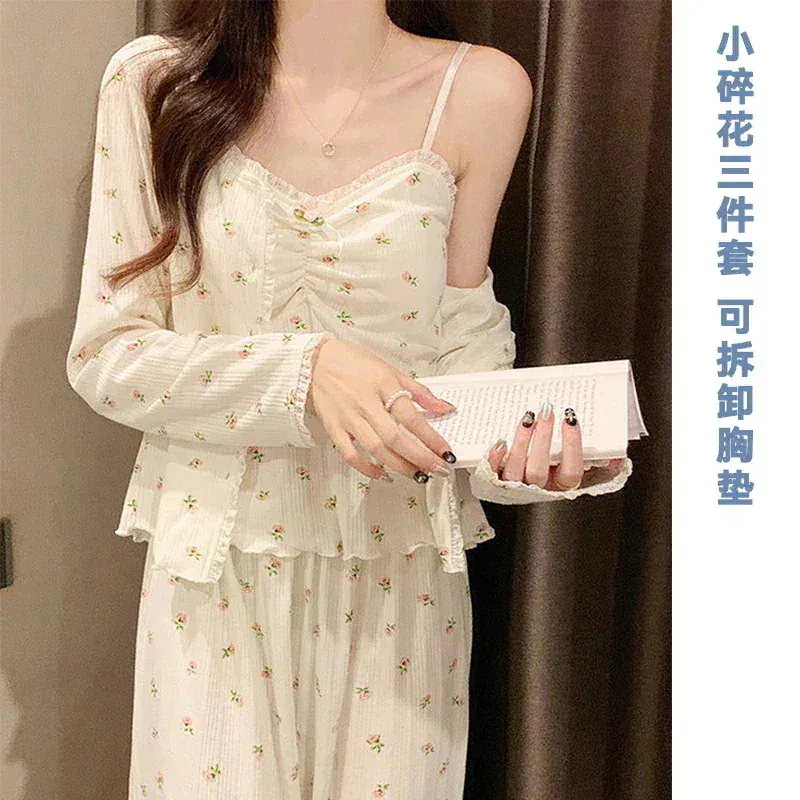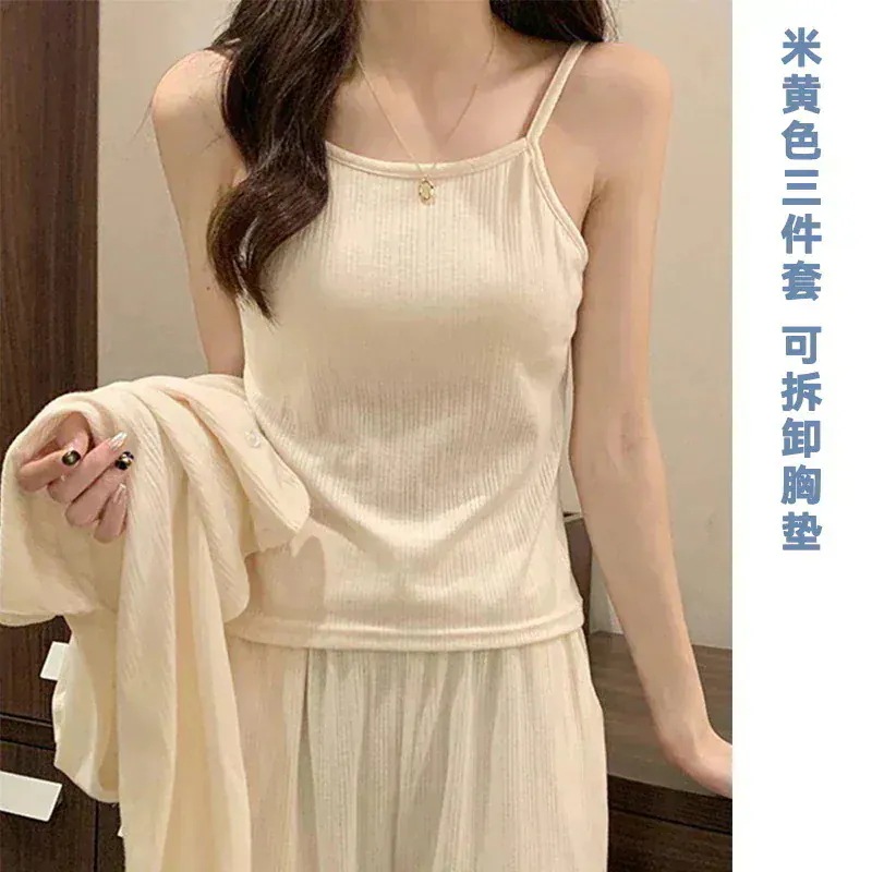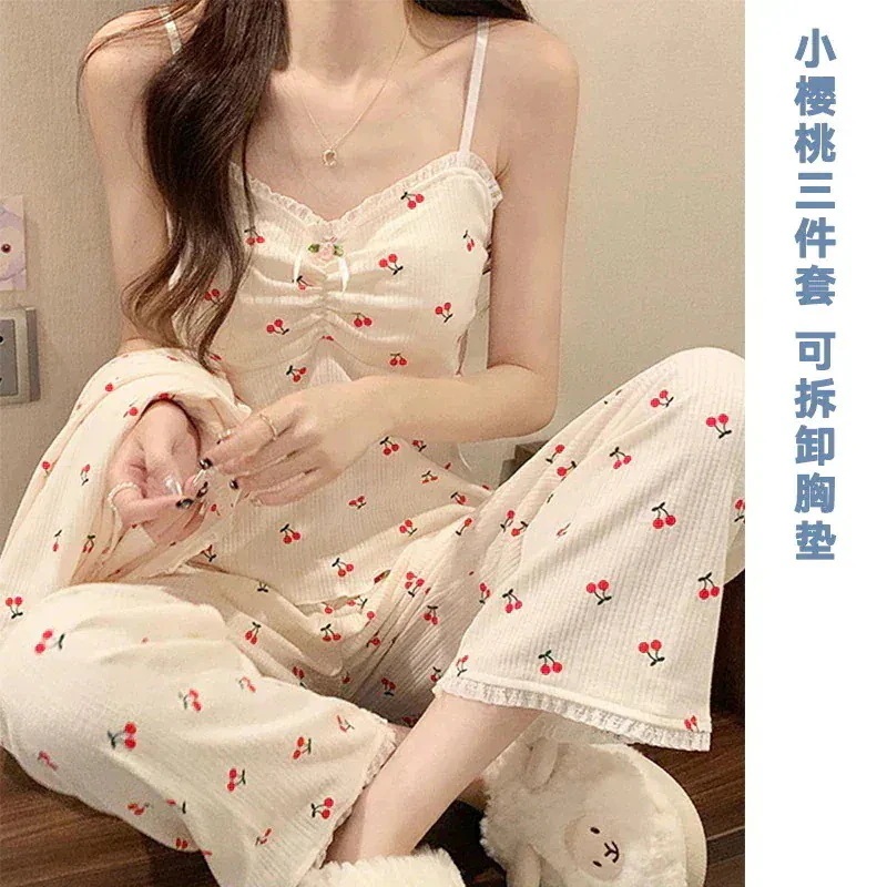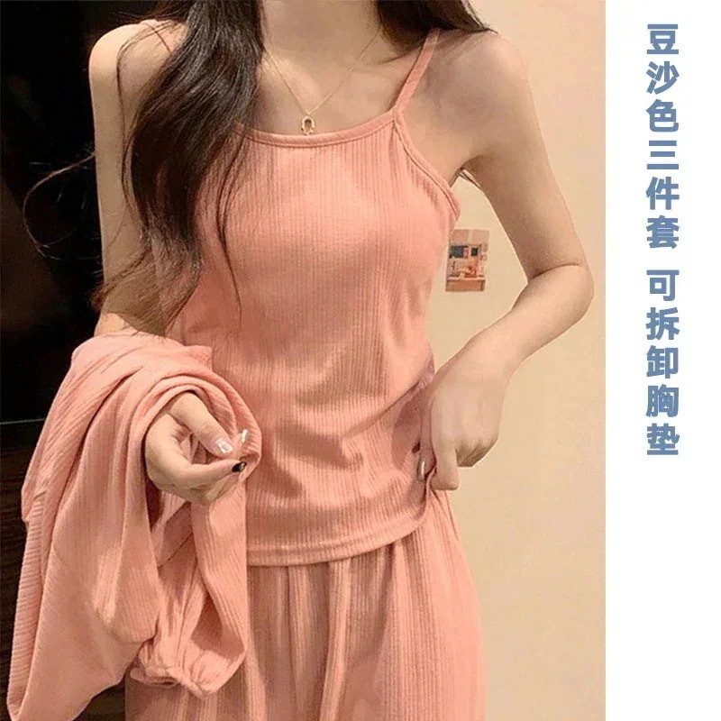ルームウェア 春秋 長袖2025 キャミソール パジャマ 部屋着セット ゆったり 胸当て付き 3点セット