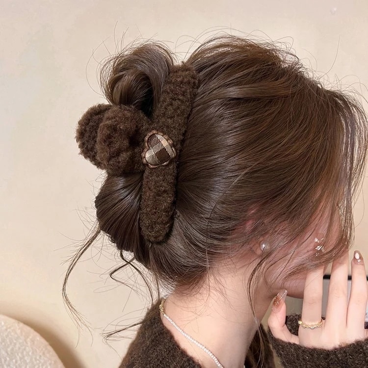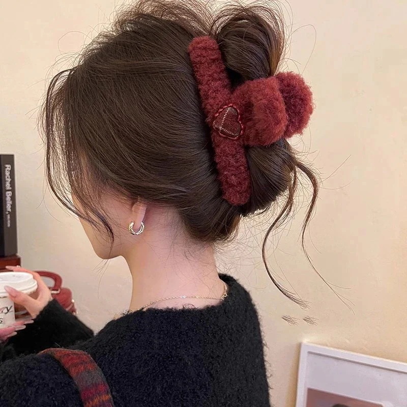 秋冬の新作ファッション 後頭部髪飾りバンスク 雑貨 かわいいハートのチェック柄 ヘアアクセサリー ヘアク