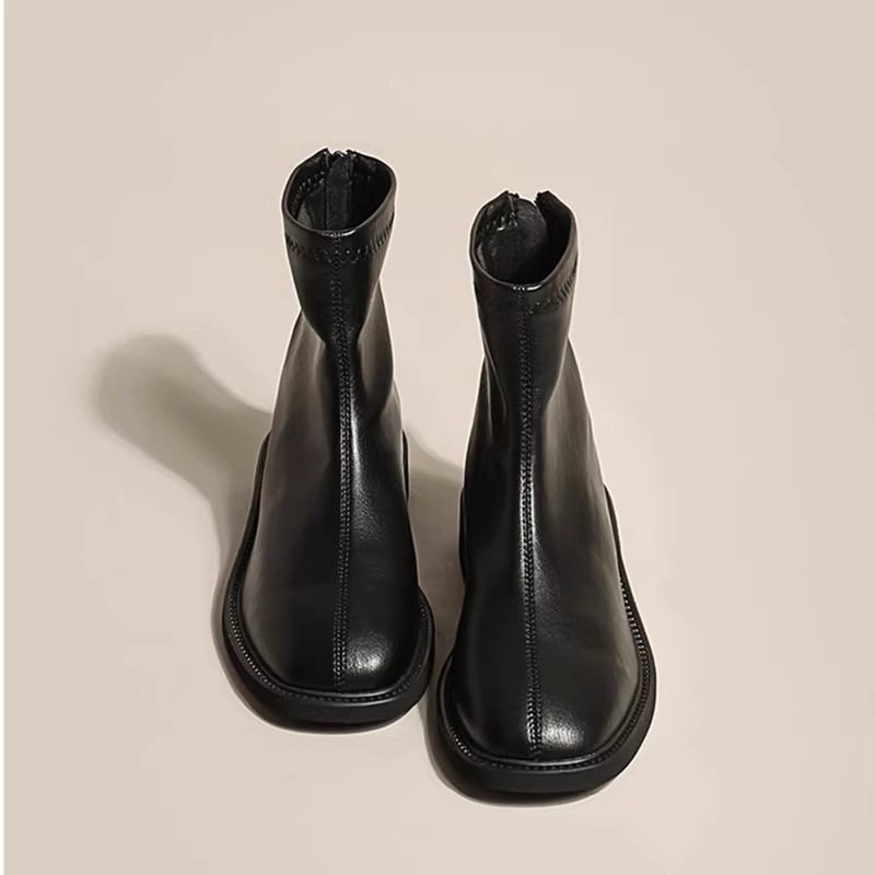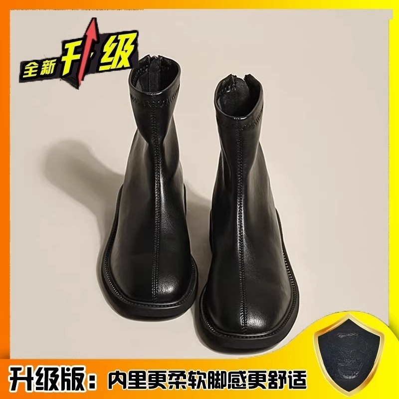 ソフトレザー冬の新作秋のショートブーツスリムダウンギャザーレディースショートブーツ
