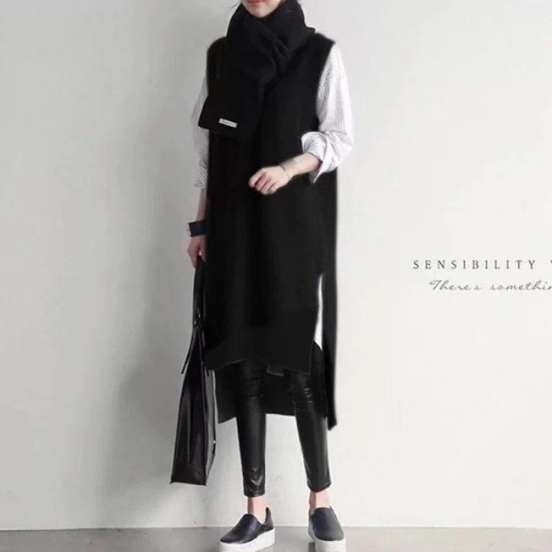 韩国新作 ニットワンピース レディース 2022 春コーデ ニットベスト Vネック スリット ゆったり 無地 シンプル 体型カバー お洒落 カジュアル 通学 通勤 新作ファション 新作