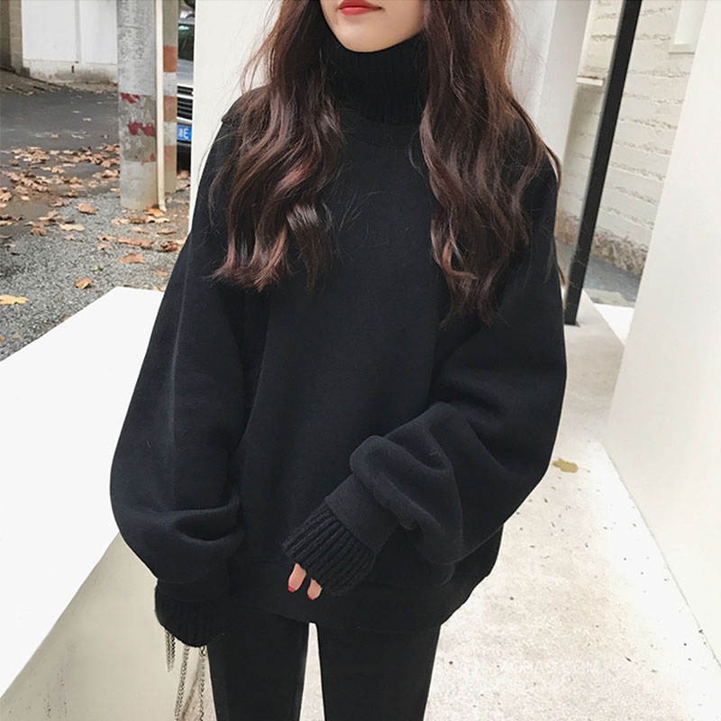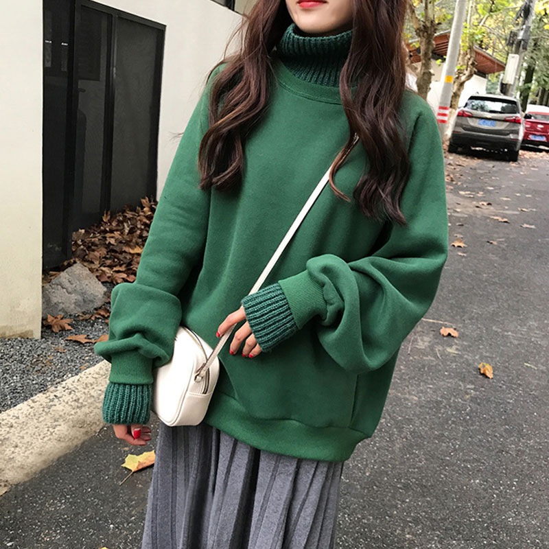 フリース裏地付き厚手のレディース用フェイクツーピース スウェットシャツファッショナブルでスタイリッシュゆったりとした冬用ハイネックスウェットシャツ
