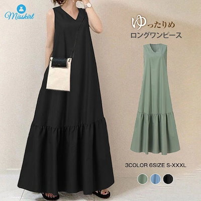 ワンピース レディース ロングワンピース ロング ワンピース ロング丈 マキシ丈 ノースリーブ ワンピ ロング Vネック 無地 体型カバー ゆったり ゆるっとワンピース シンプル ロングワンピ かわい
