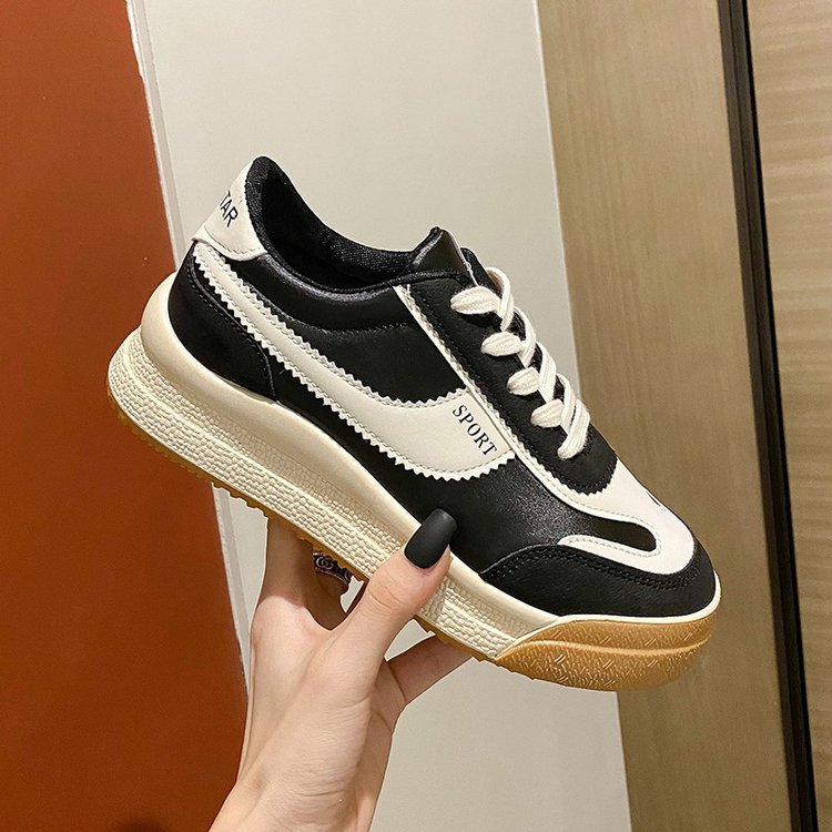 厚底スニーカー レディース 配色 美脚シューズ 運動 レトロ紐スニーカー 通勤通学靴