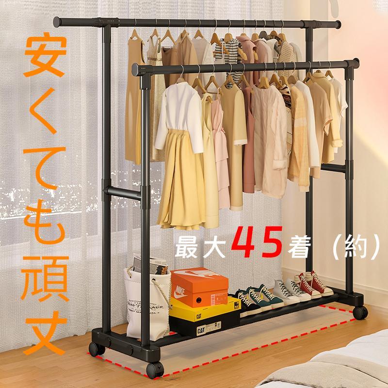 【限时折扣】ハンガーラック 頑丈 伸縮 衣類収納 キャスター付き パイプハンガーラック 洋服収納 洋服掛けラック コートハンガー コンパクト収納 部屋干し 梅雨対策