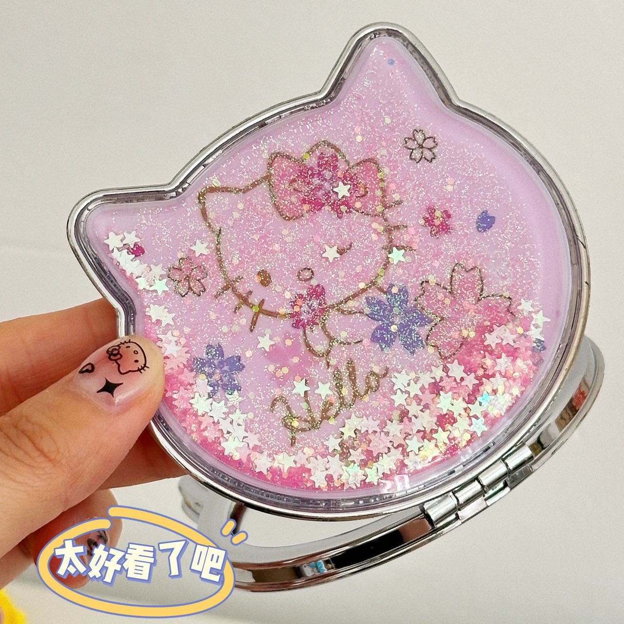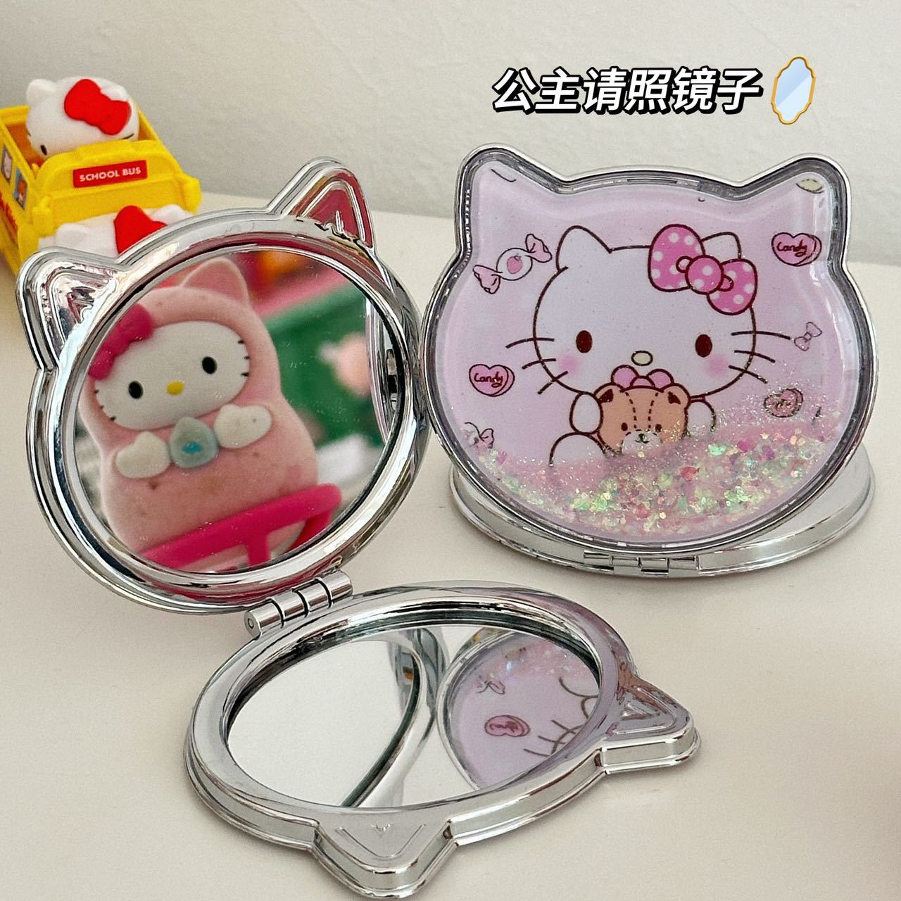 小猫流砂小鏡携帯ミニ流砂両面鏡折りたたみ式ハンドミラー付き