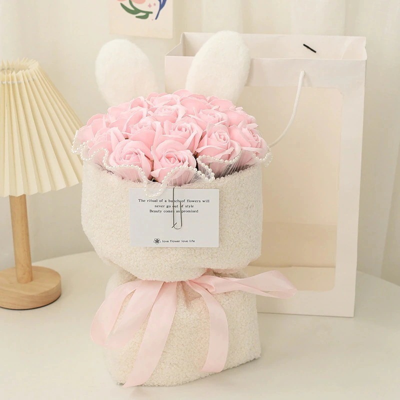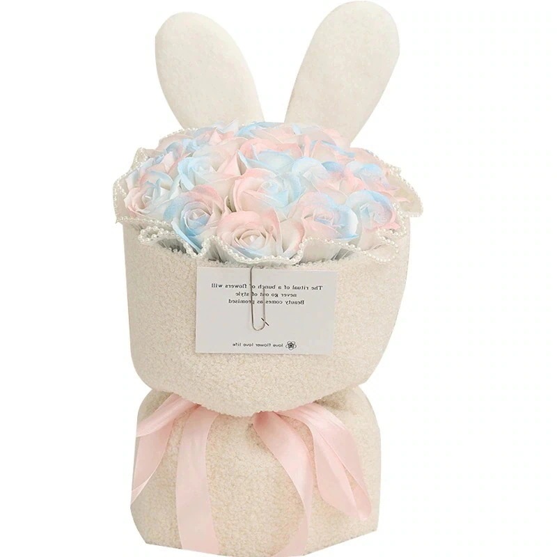 今だけ圧倒的販売 クリエイティブ シミュレーション ローズ ソープ ブーケ うさぎ うさぎの耳 花を持っている ガールフレンドへのロマンチックなギフト